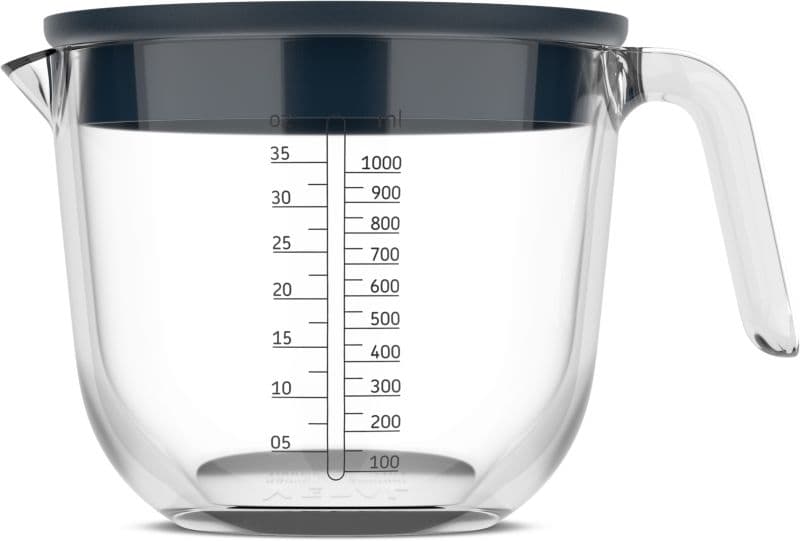 Der Messbecher mit Deckel ist ideal zum genauen Abmessen von Flüssigkeiten und Zutaten. Hergestellt aus hitzebeständigem Glas.