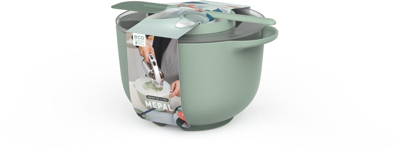 Das 3-teilige Promo-Set umfasst eine 3000 ml- Rührschüssel, einen passenden Spritzschutzdeckel und einen großen Spatel (267 mm). Die Produkte sind perfekt für den täglichen Gebrauch in der Küche.