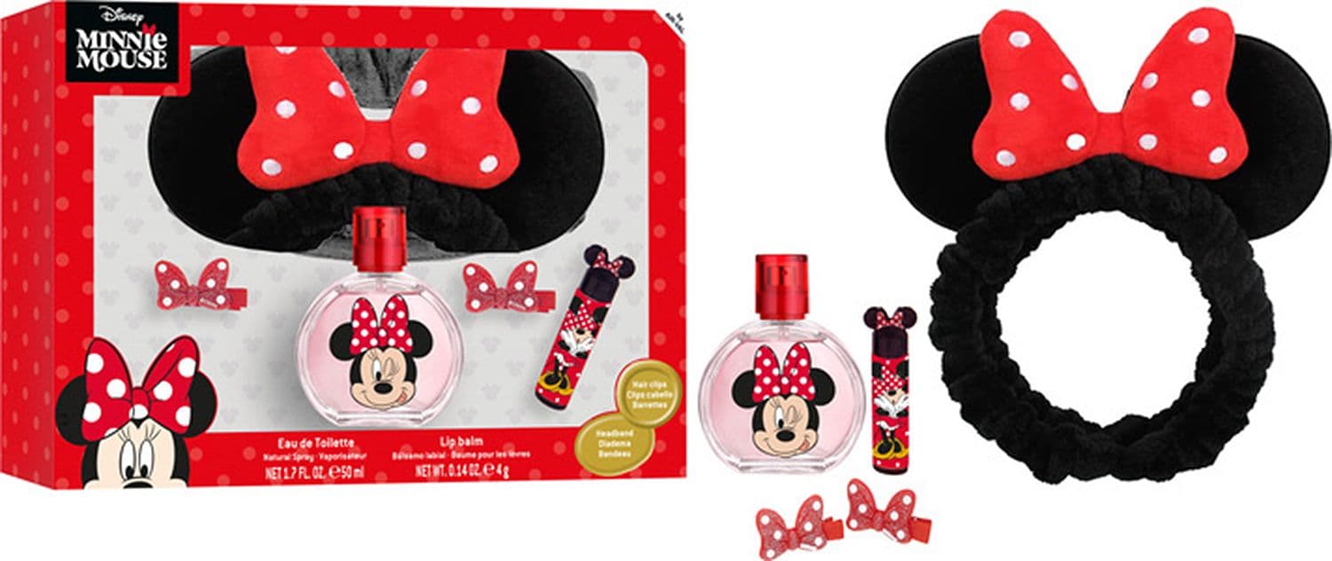 Das Minnie-Mouse-Geschenkset bietet kleinen Fans eine charmante Zusammenstellung: Ein Kinderparfum (50ml) mit einem zauberhaften Duft, ein stilvolles Haarband mit roter Minnie-Mouse-Schleife, einen pflegenden Lipbalm und zwei niedliche Haarclips mit der unverkennbaren Minnie-Mouse-Schleife. Diese liebevoll gestalteten Accessoires machen das Set zu einer wunderbaren Geschenkidee oder einem Highlight für besondere Momente.