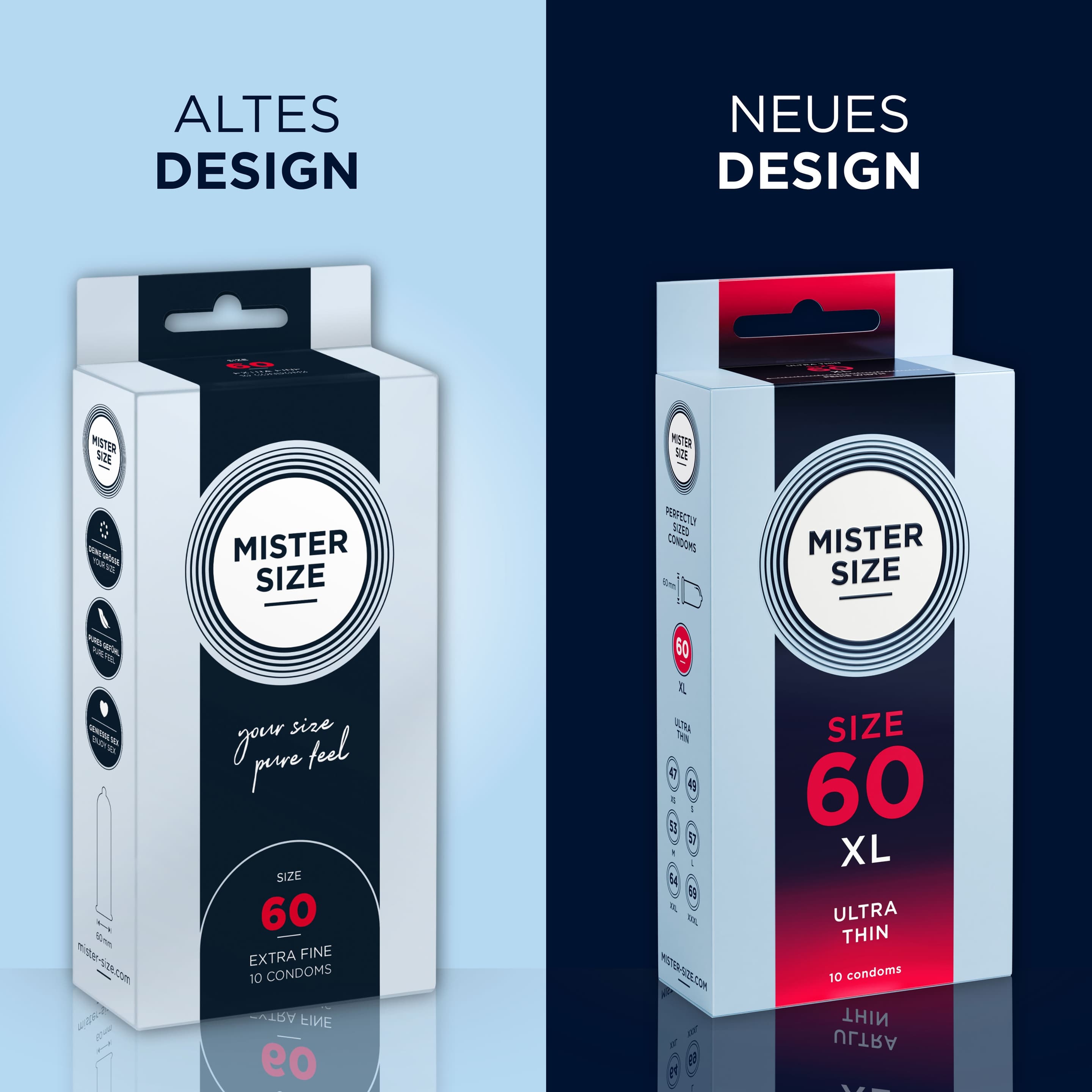 Diese Kondome zeichnen sich durch ihre spezifische Größe aus, die auf einen Penisumfang von 12 bis 13 cm abgestimmt ist. Die hauchdünne Wandstärke ermöglicht ein sehr nahes und natürliches Gefühlserlebnis. Als zuverlässiges Verhütungsmittel bei korrekter Anwendung entsprechen die Kondome der Norm ISO 4074.