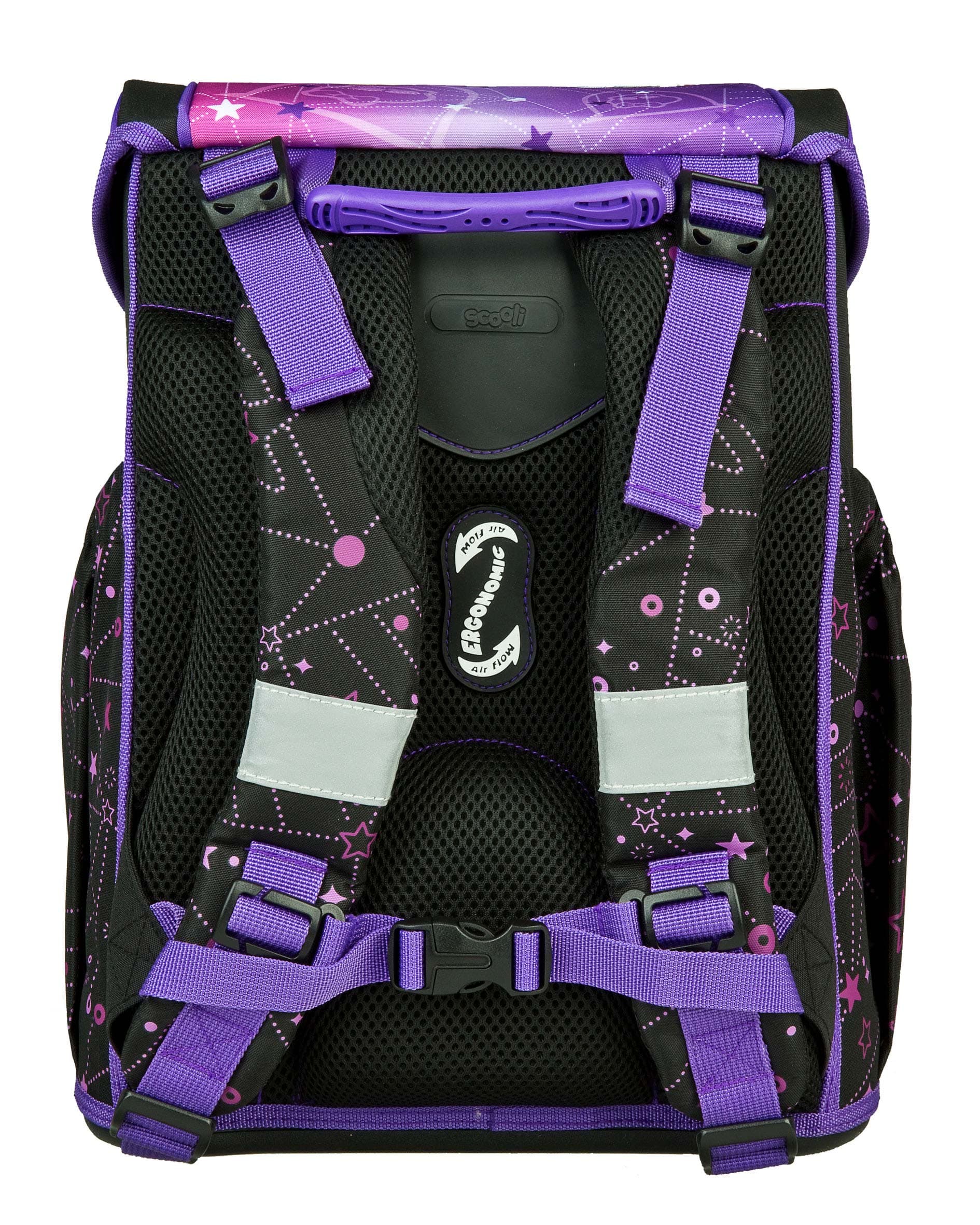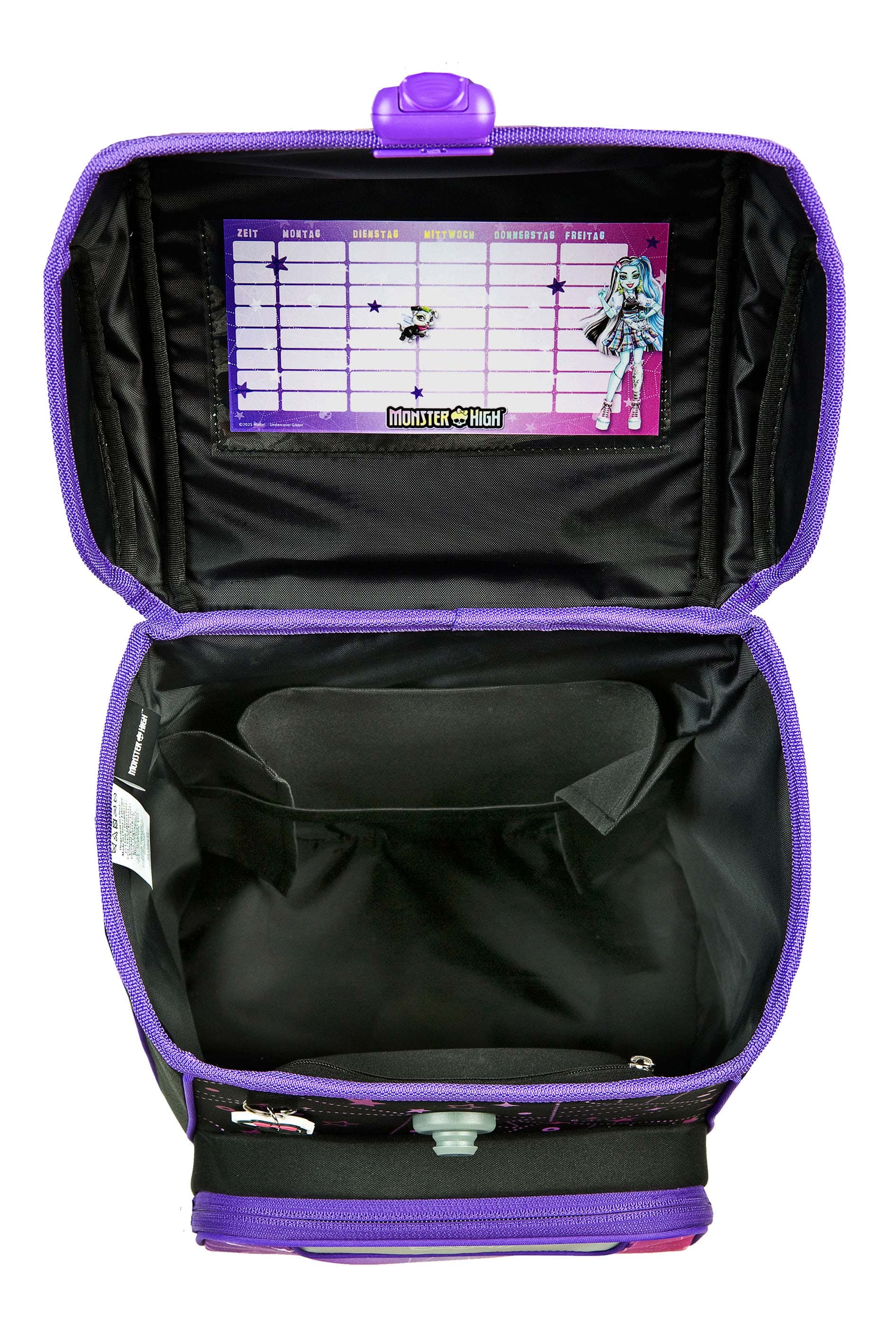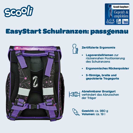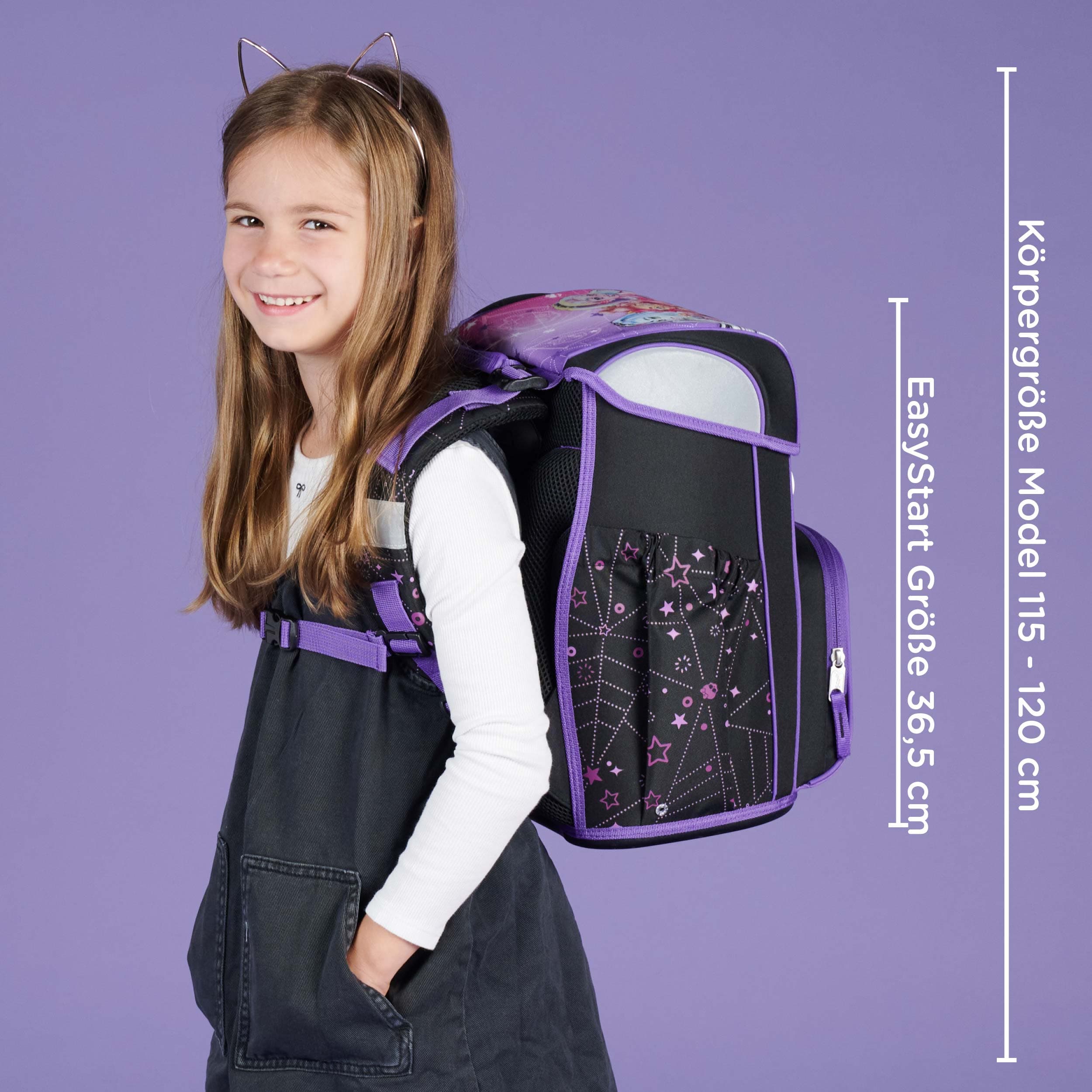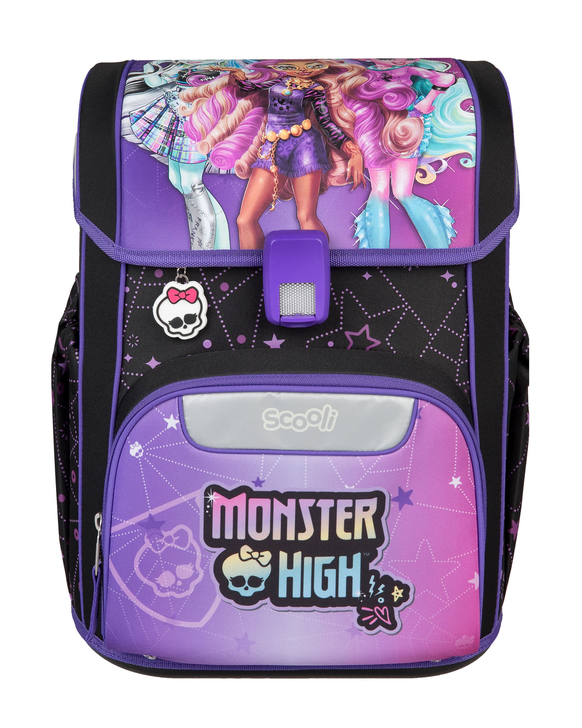 Der Scooli EasyStart Schulranzen im beliebten Monster High Design begeistert mit einem rebellischen Look und durchdachter Ergonomie: Ausgezeichnet mit dem Gütesiegel Aktion Gesunder Rücken e.V. (AGR), lässt sich der Ranzen individuell an die Anatomie des Kindes anpassen. Mit nur ca. 980 g Gewicht ist er besonders leicht und durch sein schlankes Design ideal für Schulanfänger. Ein ergonomisches, atmungsaktives Rückenpolster, ein abnehmbarer Brustgurt und Lageverstellriemen sorgen für einen komfortablen, rückenschonenden Sitz. Der Scooli Schulranzen besteht aus hochwertig verarbeiteten, strapazierfähigen Materialien, die dem bunten Schulalltag mühelos standhalten. Das praktische Magnetschloss ermöglicht ein kinderleichtes Öffnen und Schließen des Deckels. Für Sicherheit im Straßenverkehr sorgen rundum integrierte Reflektoren, die auch bei Dunkelheit und schlechtem Wetter für gute Sichtbarkeit sorgen. Das 5-teilige Schulranzen-Set enthält den EasyStart Schulranzen, ein befülltes Schüleretui mit hochwertigen Buntstiften von Eberhard-Faber, einen Turnbeutel, ein Schlamperetui sowie einen abnehmbaren Schlüsselanhänger. Mit seinem rebellischen Monster High Design ist dieser offizielle Lizenz-Schulranzen die perfekte Wahl für alle Fans der frechen Monsterpuppen-Clique. Inklusive 3 Jahren Garantie vom Hersteller.