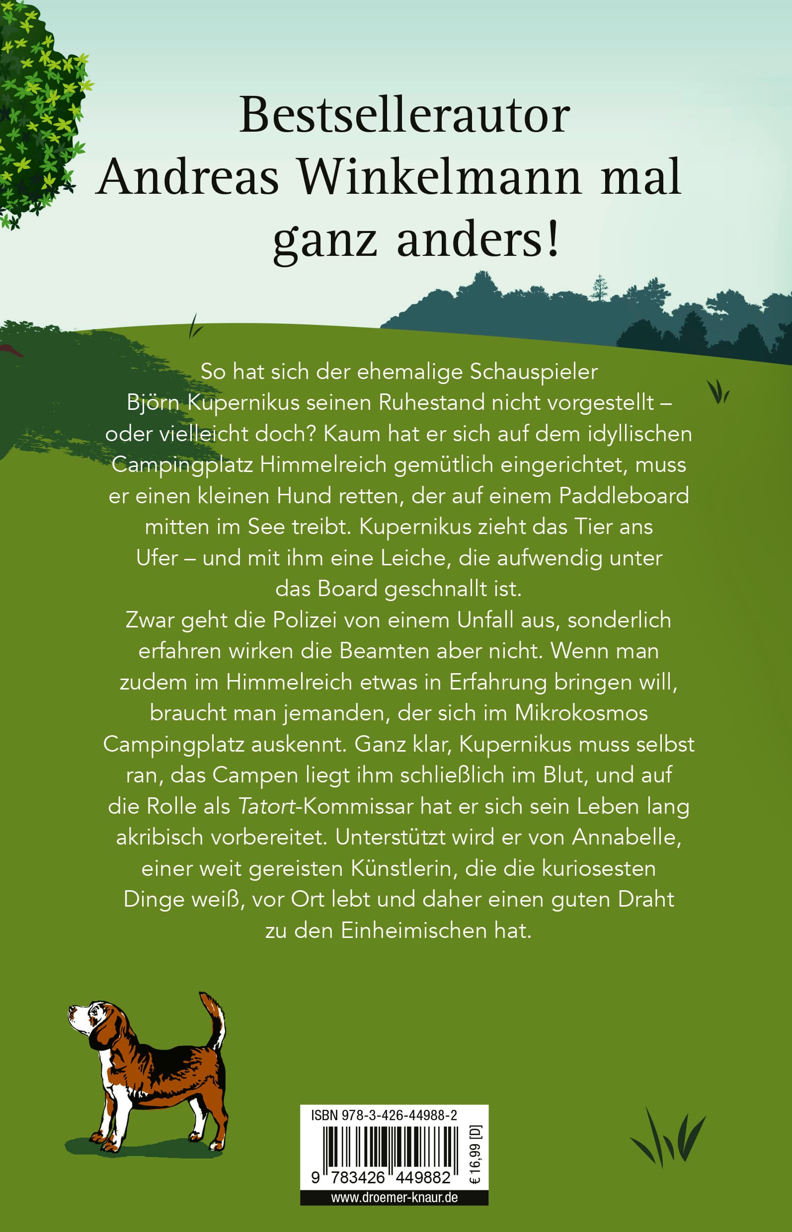 Andreas Winkelmann mal ganz anders: Lernen Sie den SPIEGEL-Bestsellerautor mit dem Auftakt seiner Campingkrimi-Serie von seiner cosy Seite kennen!»Mord im Himmelreich« ist der erste Band einer humorvollen Wohlfühlkrimi-Reihe rund um Verbrechen auf dem schönen Campingplatz Himmelreich. Es ermitteln der passionierte Camper und Hobby-Tatort-Kommissar Björn Kupernikus und die bezaubernde Künstlerin Annabelle Schäfer.Cosy Krimi mit tollem Setting und liebenswerten FigurenSo hat sich der ehemalige Schauspieler Björn Kupernikus seinen Ruhestand nicht vorgestellt – oder vielleicht doch? Kaum hat er sich auf dem idyllischen Campingplatz Himmelreich gemütlich eingerichtet, muss er einen kleinen Hund retten, der auf einem Paddleboard mitten im See treibt. Kupernikus zieht das Tier ans Ufer – und mit ihm eine Leiche, die aufwendig unter das Board geschnallt ist.Zwar geht die Polizei von einem Unfall aus, sonderlich erfahren wirken die Beamten aber nicht. Wenn man zudem im Himmelreich etwas in Erfahrung bringen will, braucht man jemanden, der sich im Mikrokosmos Campingplatz bestens auskennt. Ganz klar, Kupernikus muss selbst ran, das Campen liegt ihm schließlich im Blut und auf die Rolle als Tatort-Kommissar hat er sich sein Leben lang akribisch vorbereitet. Unterstützt wird er von Annabelle, einer weitgereisten Künstlerin, die die kuriosesten Dinge weiß, vor Ort lebt und daher einen guten Draht zu den Einheimischen hat ...Ein Fest für alle, die lustige Krimis liebenSie sind einfach ein herrliches Ermittler-Duo: der etwas brummige, aber mit wunderbarem Humor gesegnete Björn Kupernikus und die lebenslustige Künstlerin Annabelle. Gemeinsam sind sie der Polizei stets einen klugen Gedanken voraus. Bestseller-Autor Andreas Winkelmann zeigt mit seinem Camping-Krimi, dass er unheimlich gut unterhalten kann, auch ohne Blut.