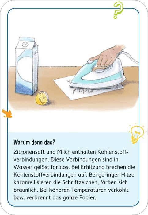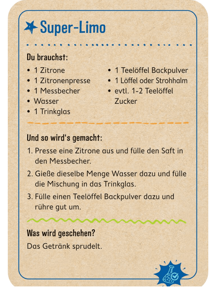 Schon mal T-Shirts mit Kurkuma gefärbt, einen eigenen Abflussreiniger hergestellt, Marmelade gekocht oder eigenes Indikatorpapier angefertigt? Es zischt und ploppt und knallt – willkommen in der Welt der Chemie! In den 75 supercoole Blubber-Zisch-Misch-Plopp-Experimente können junge Forscher*innen verblüffende und spannende Phänomene der Wissenschaft entdecken und erfahren dabei, dass Chemie in den alltäglichsten Dingen steckt. Fast alles, was man für die coolen Experimente braucht, findet man zu Hause. Jede Karte enthält ausführliche Erklärungen zum jeweiligen wissenschaftlichen Phänomen, sodass kleine Wissenschaftlerr*innen nicht nur jede Menge Experimentierspaß haben, sondern auch viel Neues lernen können. Das Kartenset ist ein perfektes Geschenk für alle Kinder, die für verblüffende chemische Reaktionen zu begeistern sind!