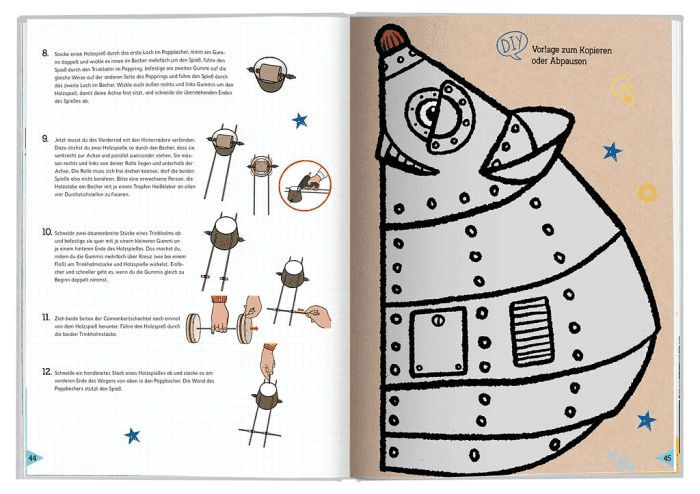 Neben den Bauanleitungen gibt es jede Menge Infos zur Robotik, lustige Rätsel und Quizfragen, die spielerisch technisches Wissen vermitteln. Perfekt fürneugierige Nachwuchsforscher*innen ab 8 Jahren!