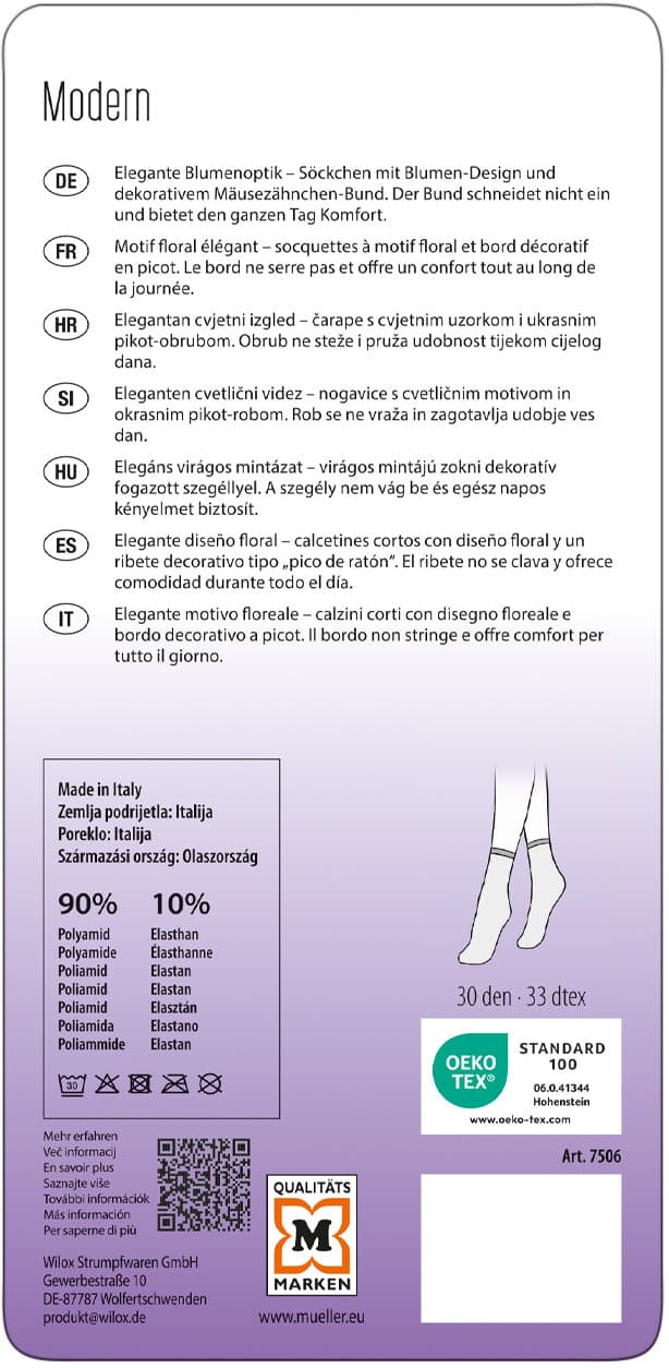 Elegante Blumenoptik – Söckchen mit Blumen-Design und dekorativem Mäusezähnchen-Bund. Der Bund schneidet nicht ein und bietet den ganzen Tag Komfort.