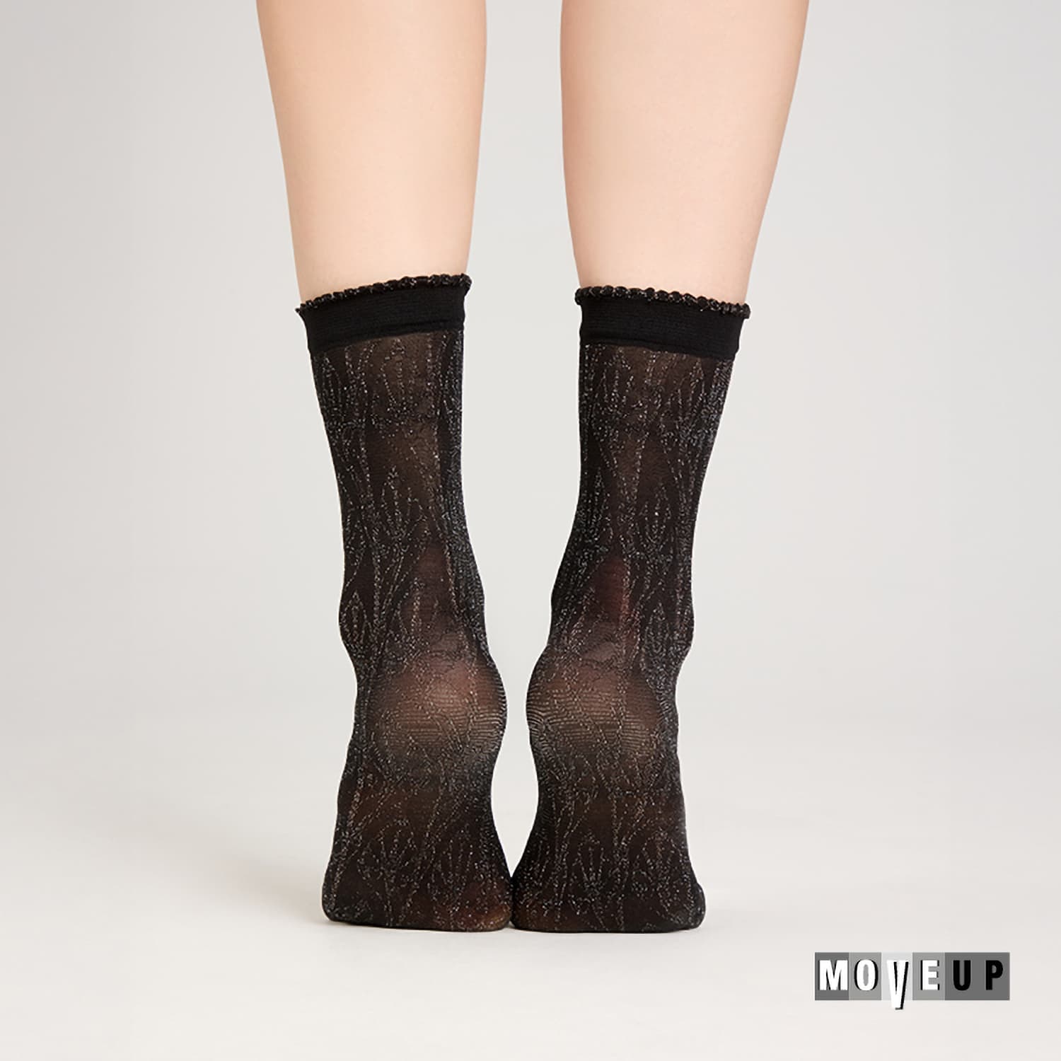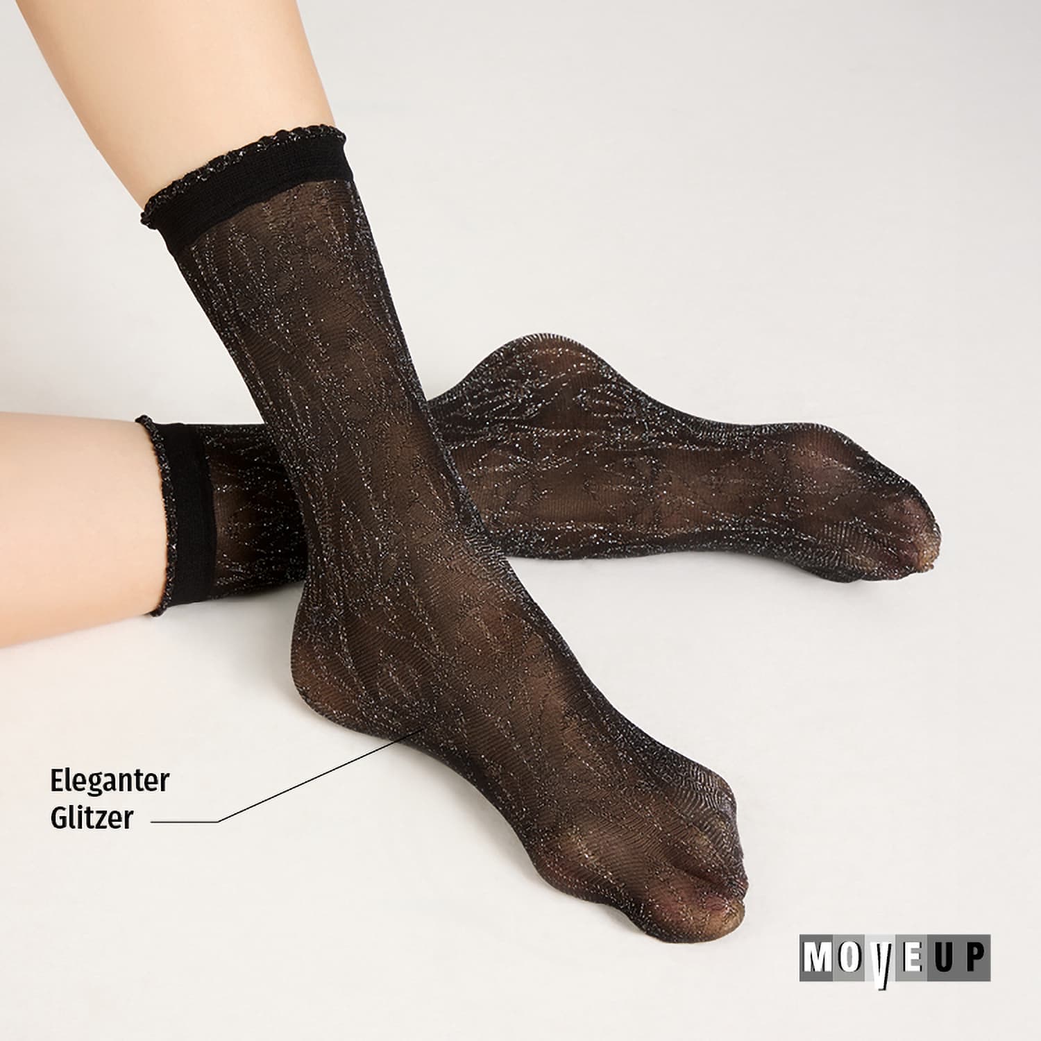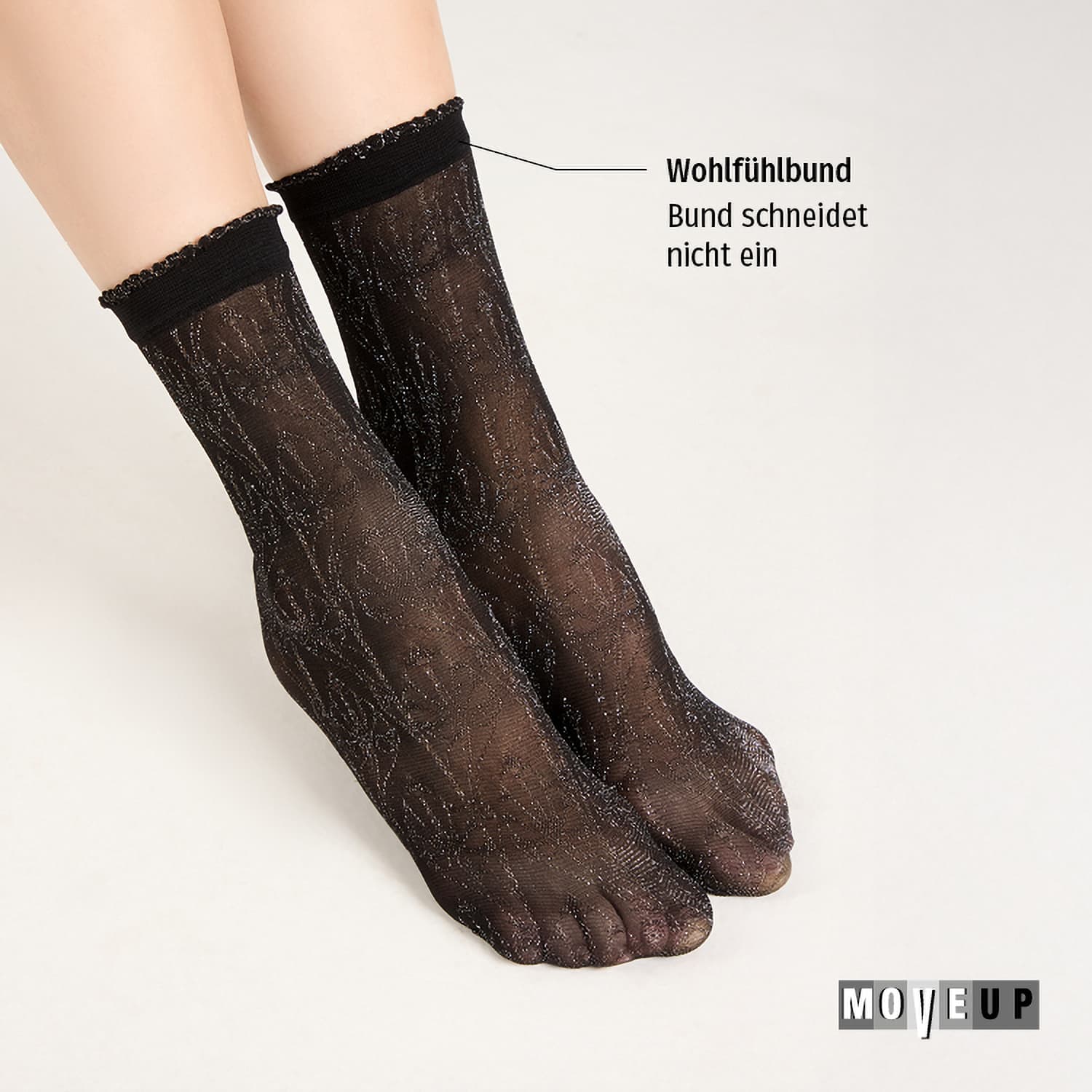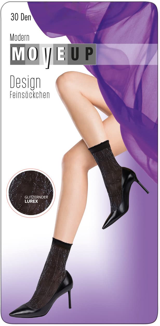 MOVE UP Damen Feinsöckchen Floral Lurex 30 DEN