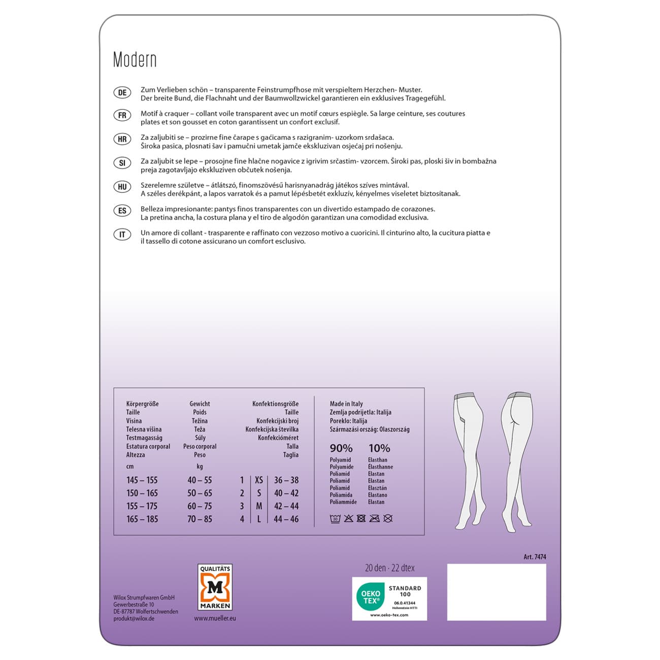 Zum Verlieben schön – transparente Feinstrumpfhose mit verspieltem Herzchen- Muster. Der breite Bund,die Flachnaht und der Baumwollzwickel garantieren ein exklusives Tragegefühl.