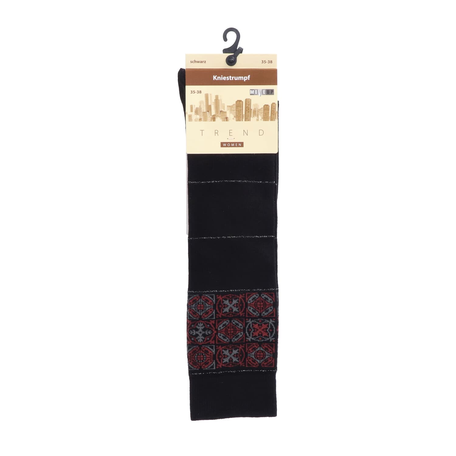 Modischer Kniestrumpf mit Glitzerstreifen und Mosaik-Design, weiche Baumwollqualität für hohen Tragekomfort, druckfreie Spitze.