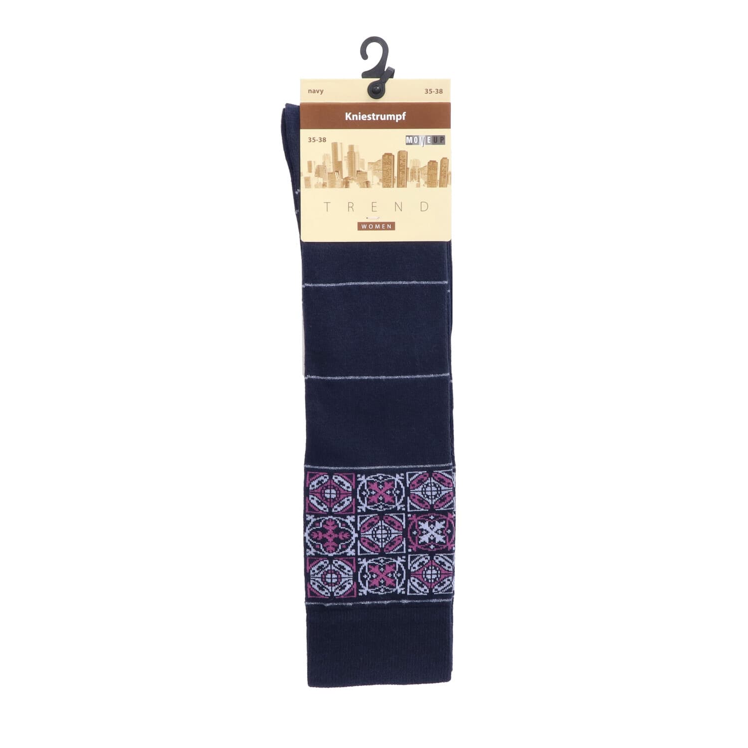 Modischer Kniestrumpf mit Glitzerstreifen und Mosaik-Design, weiche Baumwollqualität für hohen Tragekomfort, druckfreie Spitze.