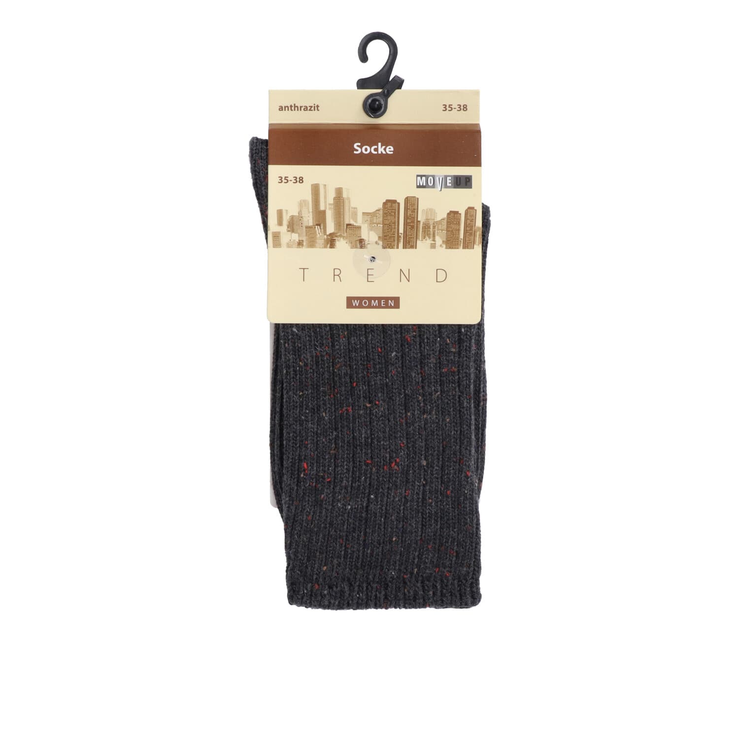 Modische Socke aus effektvollem, weichem Baumwollgarn, Rippstruktur mit druckfreiem Abschlussbund, druckfreie Spitze.