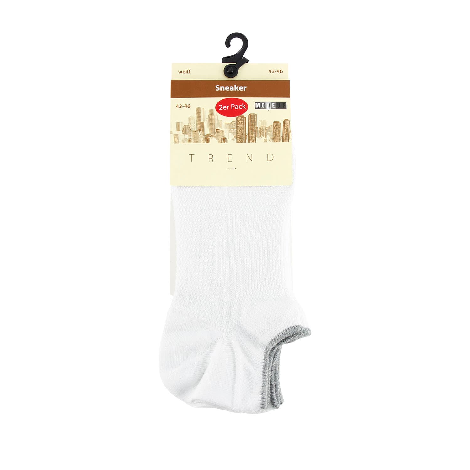 Die MOVE UP Unisex Sneaker Socken sind die ideale Wahl für einen angenehmen Tragekomfort in Sportschuhen und Sneakern. Dank ihrer speziellen Konstruktion bieten sie einen zuverlässigen Sitz bei jeder Bewegung.