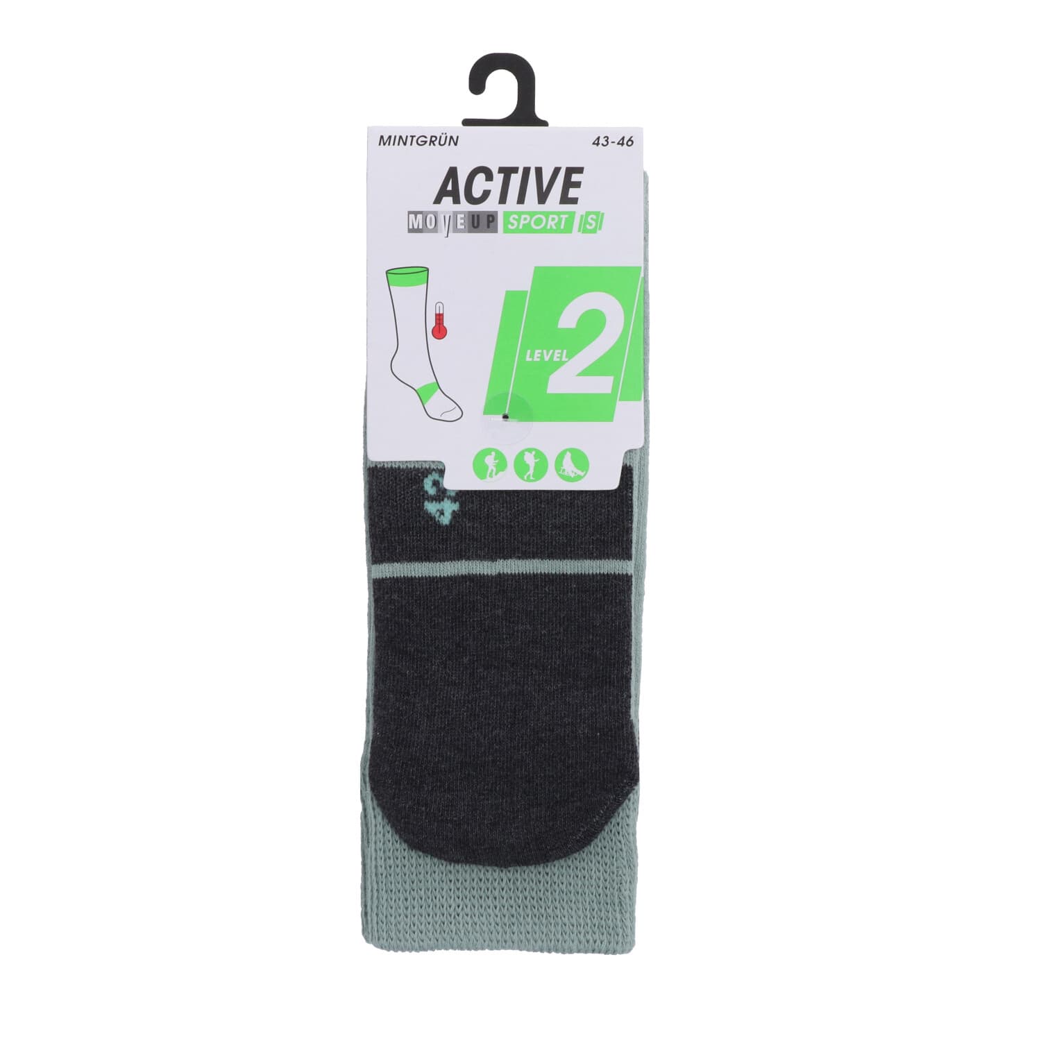 Vollfrottee zur Wärmespeicherung, hoher Naturfaser Anteil, softer Abschlussbund, Fußbandage für optimalen Halt.