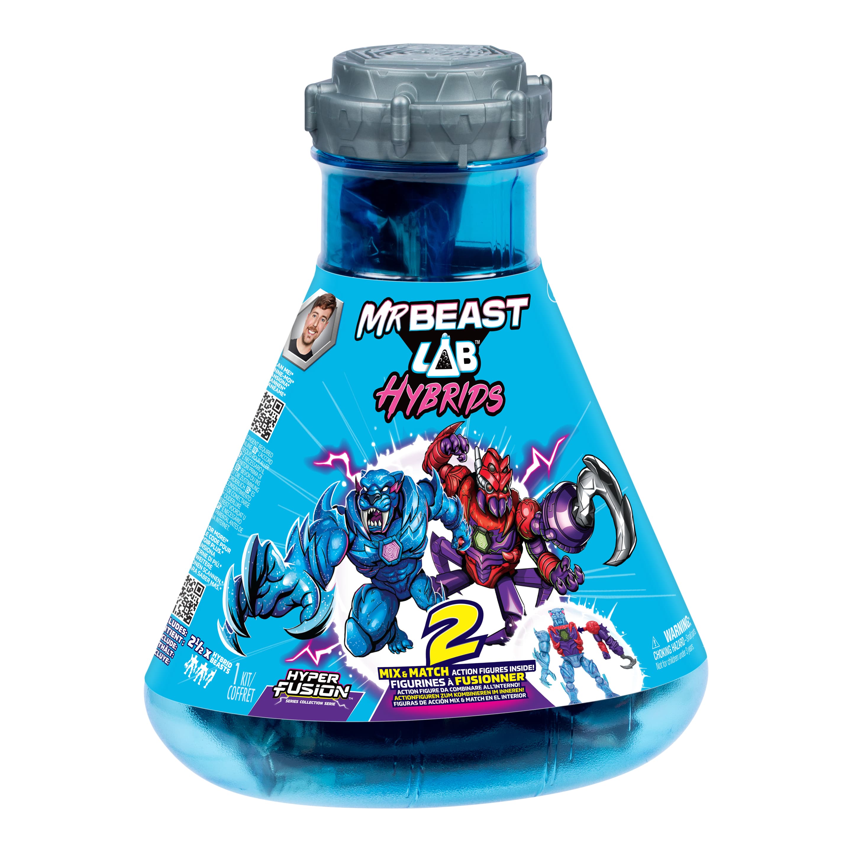 Zum allerersten Mal kannst du MrBeasts Labor betreten und das ultimative Monster erschaffen! Mit MrBeast Lab Hybrids liegt die Macht der Fusion in deinen Händen – baue aus zahlreichen Kombinationen die ultimative MrBeast-Actionfigur! Das Ganze beginnt mit dem MrBeast Lab-Behälter: Drehe und öffne den Deckel, um einen Streifen versiegelter Folienbeutel herauszuziehen. Reiße sie auf, um einzelne Monsterteile zu enthüllen und 2 epische Actionfiguren daraus zu bauen. Ebenfalls enthalten sind Teile des Golden Panther Dragon. Sammle beide Mehrfachpackungen, um diesen ultraseltenen Golden Dragon fertigzustellen. Entdecke und kombiniere 2 verschiedene MrBeast Hybrid Lab-Charaktere in der Mehrfachpackung, um das ultimative Monster zu erschaffen. Sammle über 30 Monster, inklusive der seltenen und ultraseltenen Edition sowie der Premium-Edition. Das Rennen um die ultimative Sammlung ist eröffnet! Mit einer Größe von 10,16 cm und 10 beweglichen Gelenken sind die MrBeast Lab Hybrids bereit für Action und sorgen für ultimativen Spielspaß! Jede Mehrfachpackung enthält 2 komplette Hybrid-Monster sowie Teile des Golden Panther Dragon, die nur darauf warten, entdeckt zu werden. Kombiniere, gestalte und erweitere deine MrBeast Lab Hyper Fusion-Sammlung noch heute! Schau dir auch die brandneuen Animationsvideos von MrBeast Lab auf YouTube an und erlebe die Hybrids in Aktion!