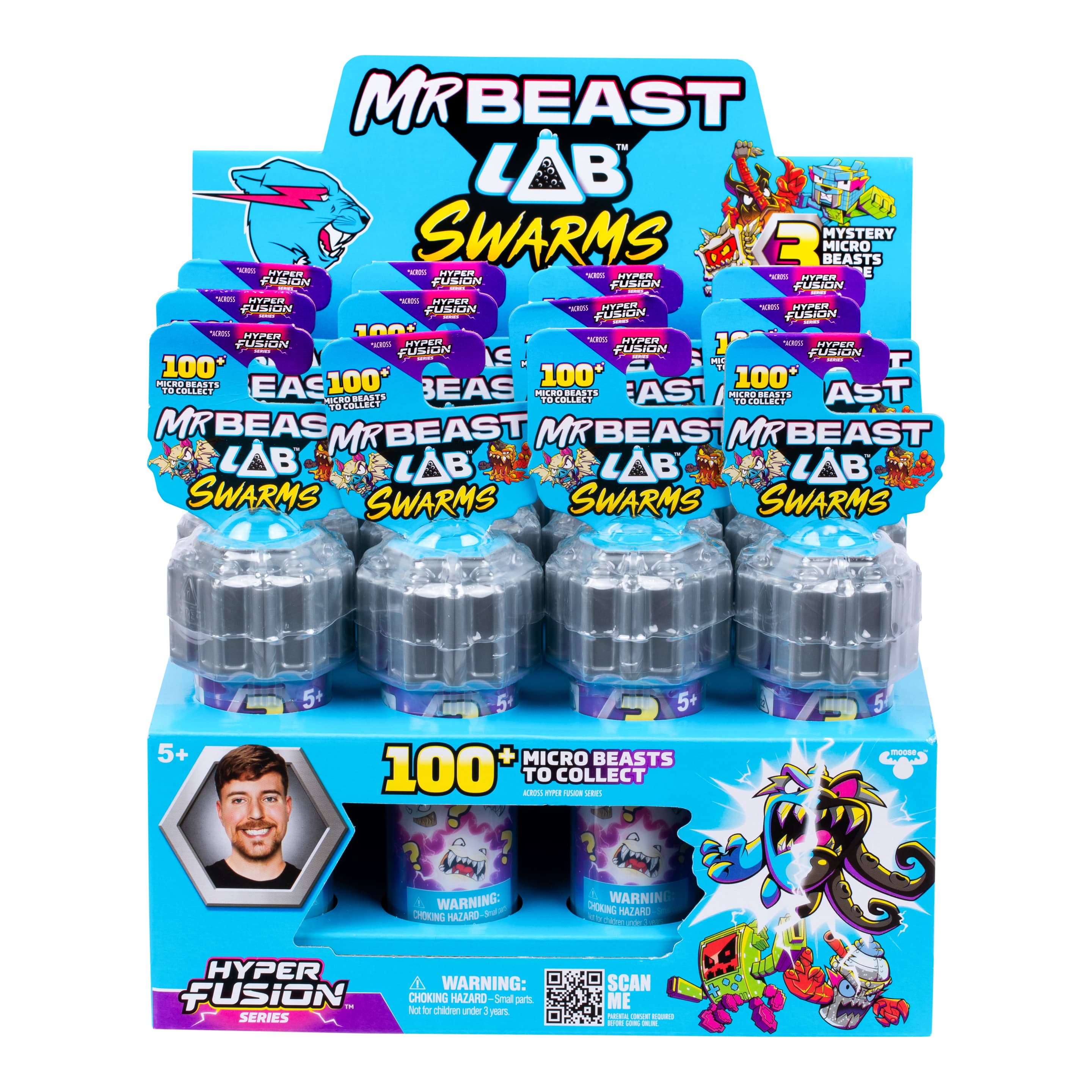 MrBeast Lab Swarms wurden „hyperfusioniert“, um die bisher wildesten Kreationen zu erschaffen. Verrückte Lava-, Eis- und Metallkombinationen sorgen im Labor für Chaos und warten darauf, entdeckt zu werden! Es gibt über 100 epische und einzigartige Hyper Fusion Swarms (2,5 cm) zum Sammeln, inklusive seltener und ultraseltener Editionen, Sondereditionen sowie der Limited Edition mit dem begehrten Hyper Fusion Panther, der aus drei verschiedenen Elementen besteht! Du musst allerdings schnell sein, denn es sind nur 1.000 Hyper Fusion Panther in der NEUEN MrBeast Lab-Serie erhältlich! Mit dabei in der Hyper Fusion-Serie sind die neuen EPISCHEN Hyper Fusion-Sticker! Jede Packung enthält einen einzigartigen Swarm-Sticker, den du in der Sammelanleitung einkleben kannst. Schaffst du es, alle Sticker zu sammeln und deine Sammlung zu vervollständigen? Die Reagenzglaspackung enthält 3 mysteriöse Mini-Monster sowie 3 Hyper Fusion-Sticker! In der Hyper Fusion-Serie findest du auch Fusions-Kapseln. Diese Kapseln können zusammengesteckt werden, um deine Sammlung zu präsentieren und dein eigenes MrBeast Lab aufzubauen. Die Reagenzglaspackung enthält 1 Fusions-Kapsel. Mit weiteren MrBeast Swarms-Packungen kannst du deine Sammlung jederzeit erweitern. Verbreite das Hyper Fusion-Chaos und baue deine MrBeast Lab Hyper Fusion-Sammlung noch heute auf! Erlebe die Swarms mit brandneuen animierten MrBeast Lab-Inhalten auf YouTube in Action und sieh zu, wie die Swarms auch online für Chaos sorgen!