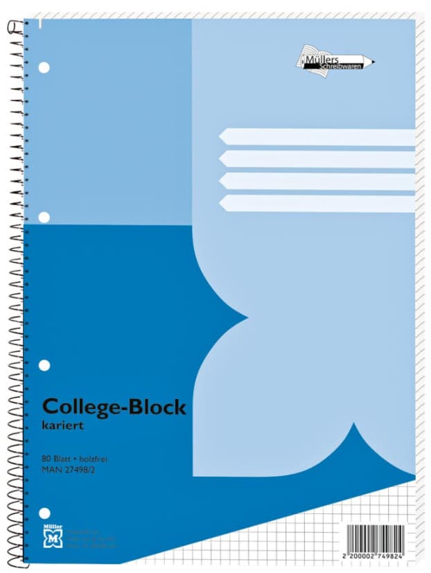 Collegeblock mit Spiralbindung - A4-Format, 80 Blatt.