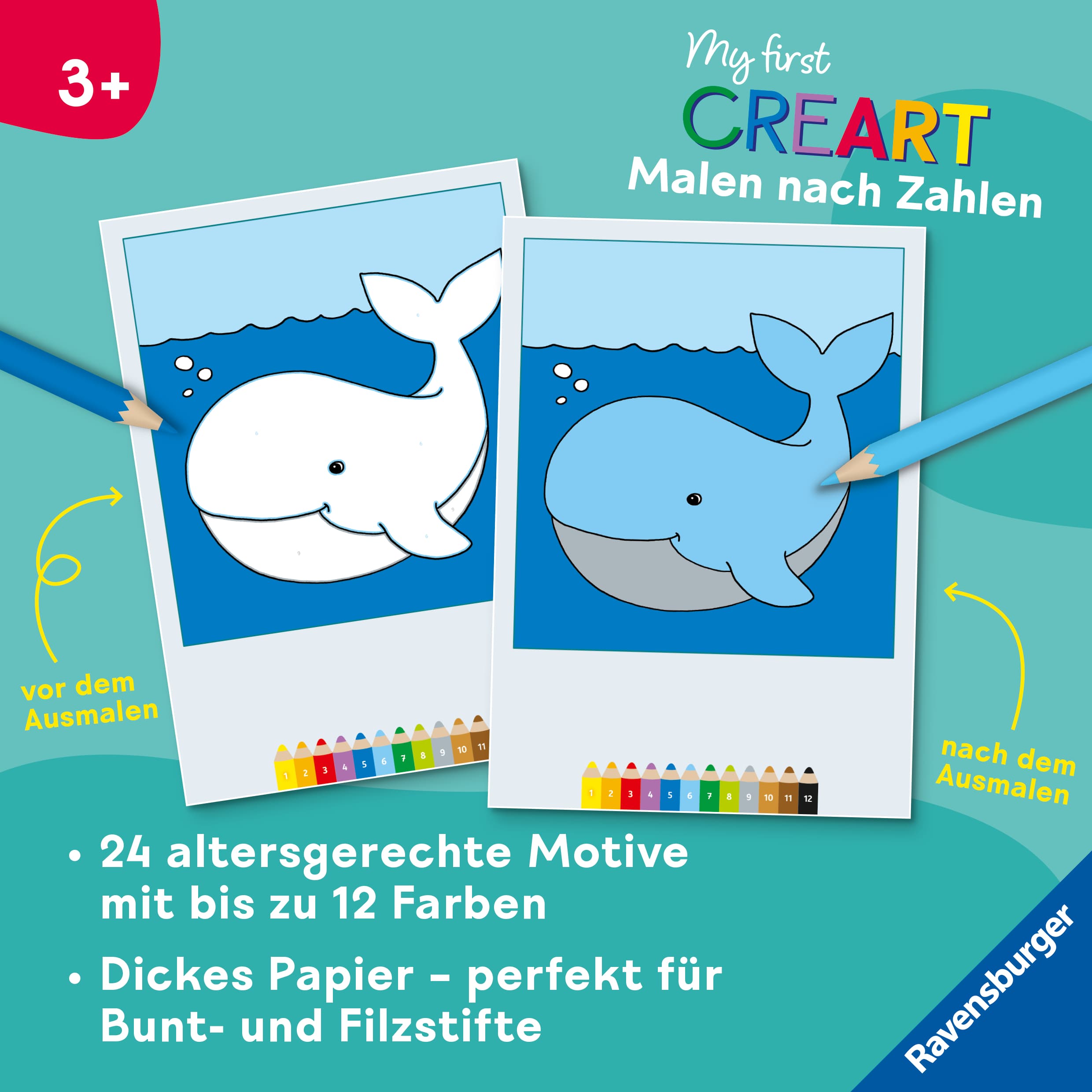 Die Ravensburger Erfolgsreihe CreArt - Malen nach Zahlen macht Malen zum Kinderspiel: Alle Ausmalfelder enthalten Zahlen, die die Farben vorgeben. Feld für Feld entstehen so ansprechende, detailreiche Bilder. Kinder malen erfolgreich auch anspruchsvolle Motive, wie Dinosaurier oder Pferde. Die Malbuch-Reihe enthält Angebote für drei Altersstufen: ab 3 Jahren, ab 5 Jahren und ab 7 Jahren. Je nach Alter variiert die Größe der Malflächen. Sehr kleine Flächen sind vorgefärbt. Die Farbe der Zahlen erleichtert Vorschulkindern die Zuordnung. So können die Kinder ganz nebenbei die Zahlen lernen. CreArt - Malen nach Zahlen gibt es auch mit Überraschungseffekt. In Heften mit Zauberpapier werden beim Ausmalen zusätzlich versteckte Details sichtbar. Das ist magisch und motiviert zum Fertigmalen. CreArt ist Malspaß mit Erfolgsgarantie und ein perfektes Geschenk für Mädchen und Jungen.