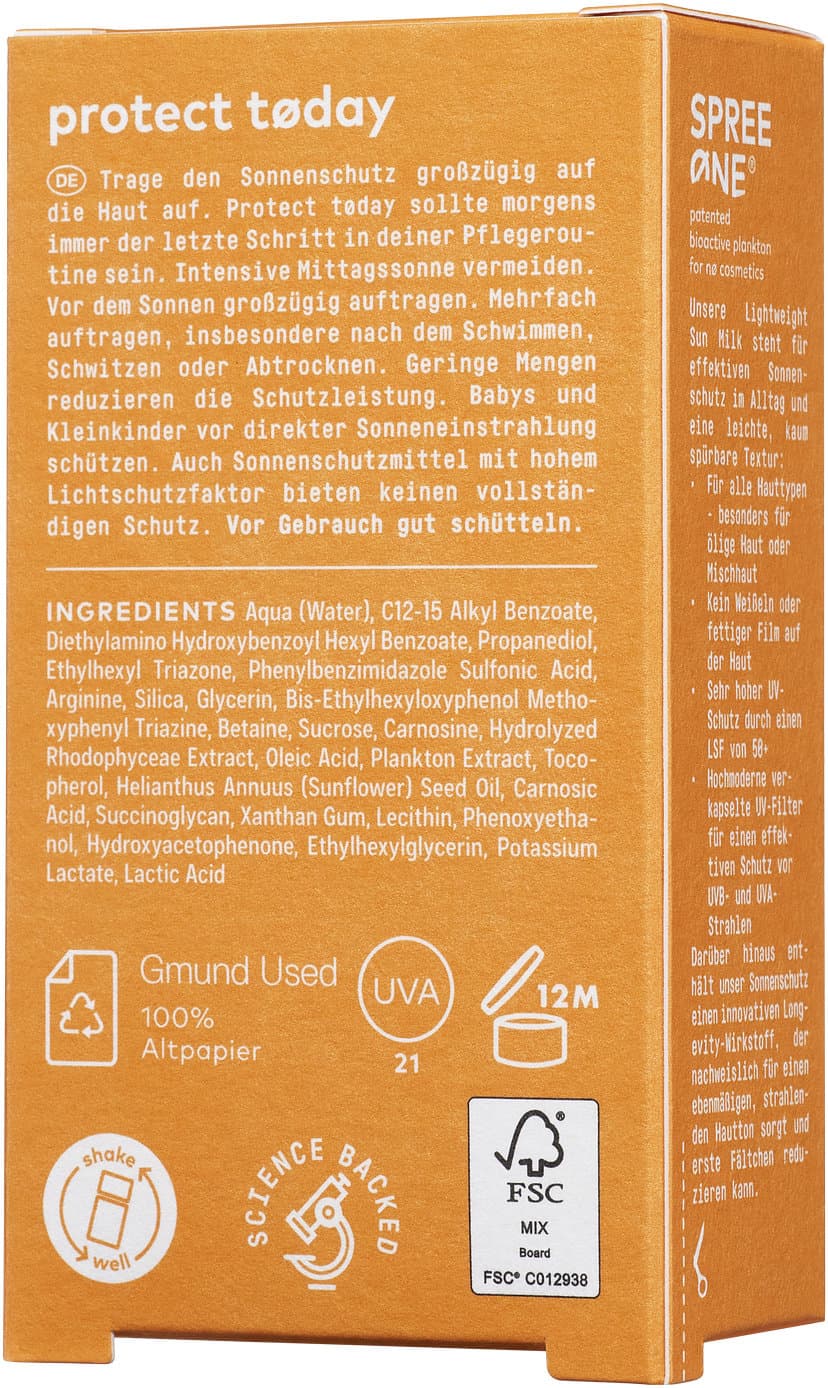 Nø Cosmetics protect tøday Lightweight Sun Milk LSF 50+