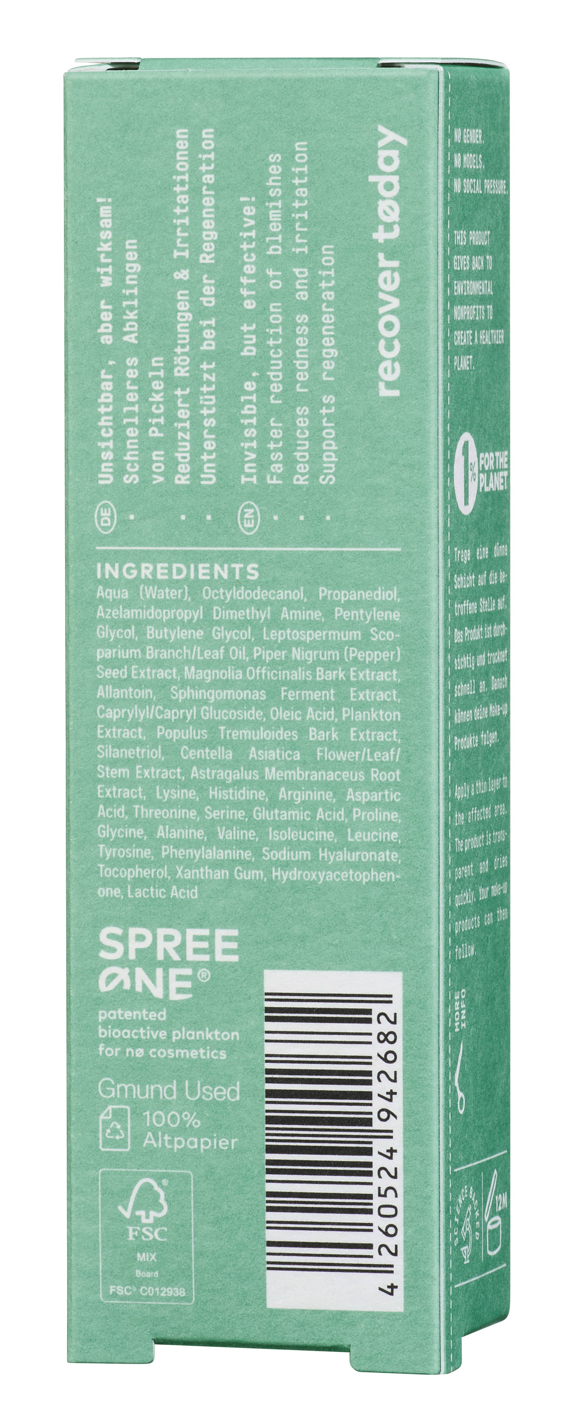 | Anwendungshinweis | Eine dünne Schicht auf die betroffene Hautstelle auftragen und kurz antrocknen lassen. Danach mit Sonnenschutz und/oder Make-up fortfahren. |