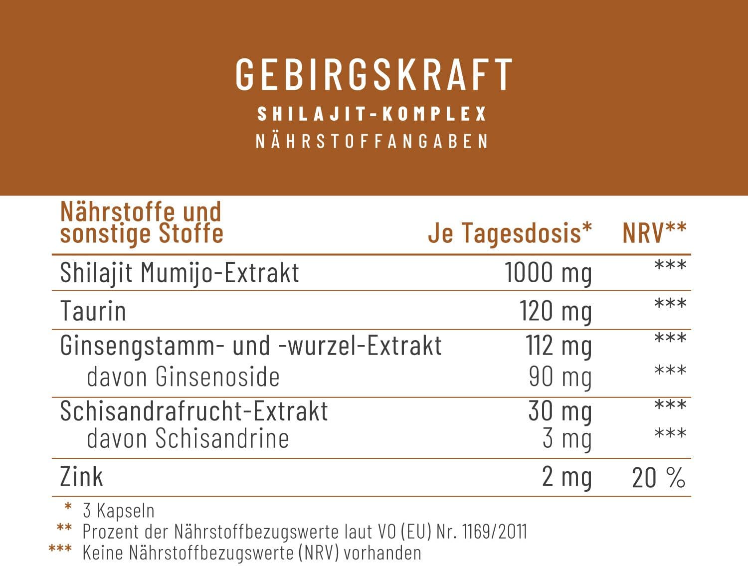 GEBIRGSKRAFT ist ein natürlicher Shilajit-Komplex.