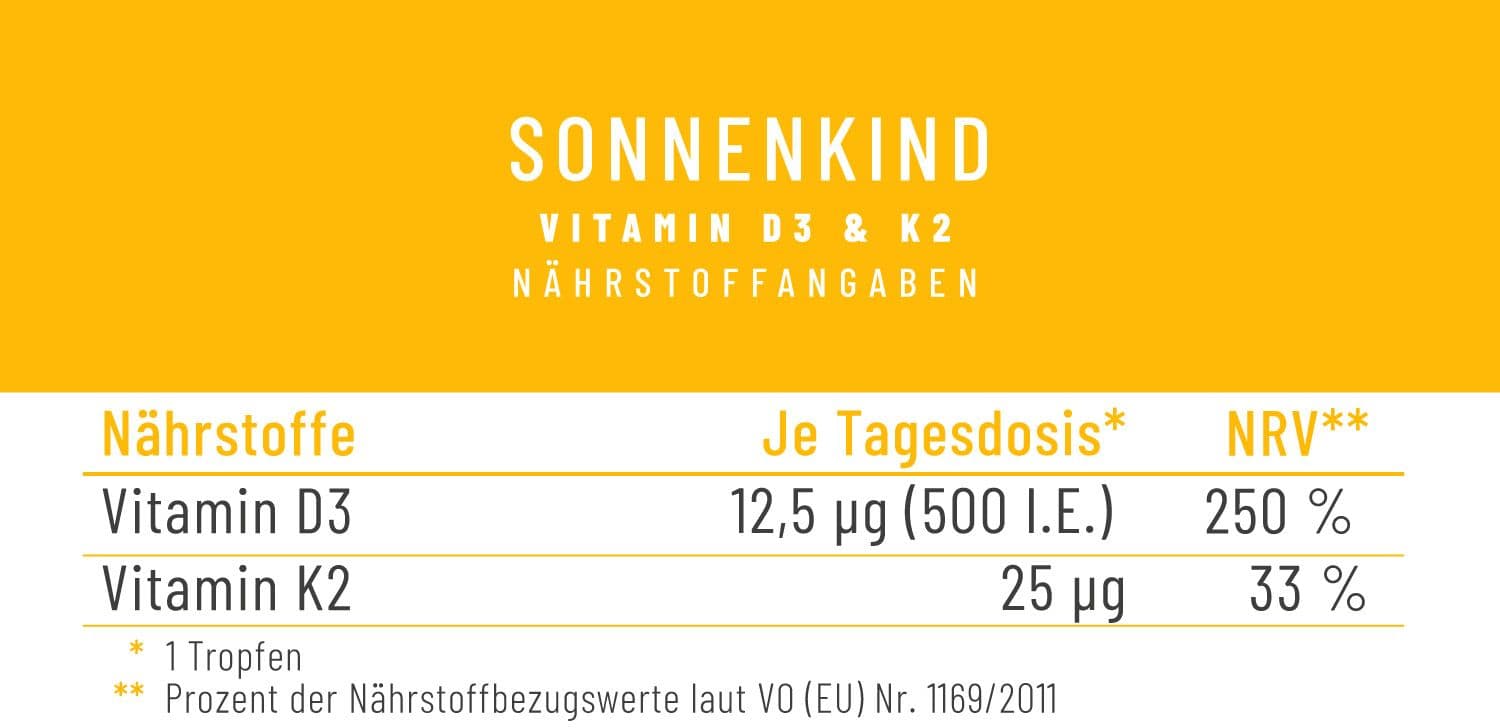 SONNENKIND liefert Vitamin D3 und K2 in Tropfenform für eine flexible Dosierung.