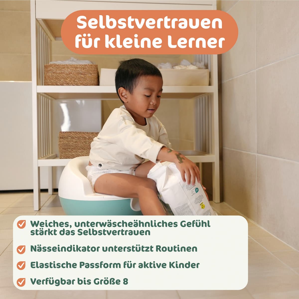 Die Windelhöschen überzeugen durch ihre hautfreundlichen Eigenschaften. Sie sind gemäß Oeko-Tex Standard 100 zertifiziert und somit auf schädliche Substanzen geprüft. Die Eignung für empfindliche Haut wird durch eine dermatologische Zertifizierung bestätigt. Dank des durchdachten Designs und der atmungsaktiven Beschaffenheit kann sich das Kind frei bewegen und fühlt sich rundum wohl.