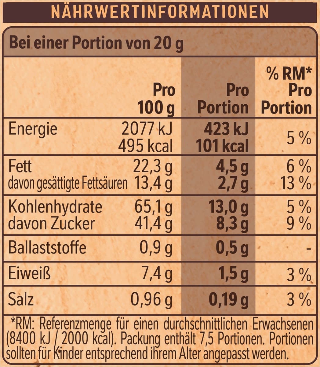 | Anwendungshinweis | Portionen sollten für Kinder entsprechend ihrem Alter angepasst werden. |