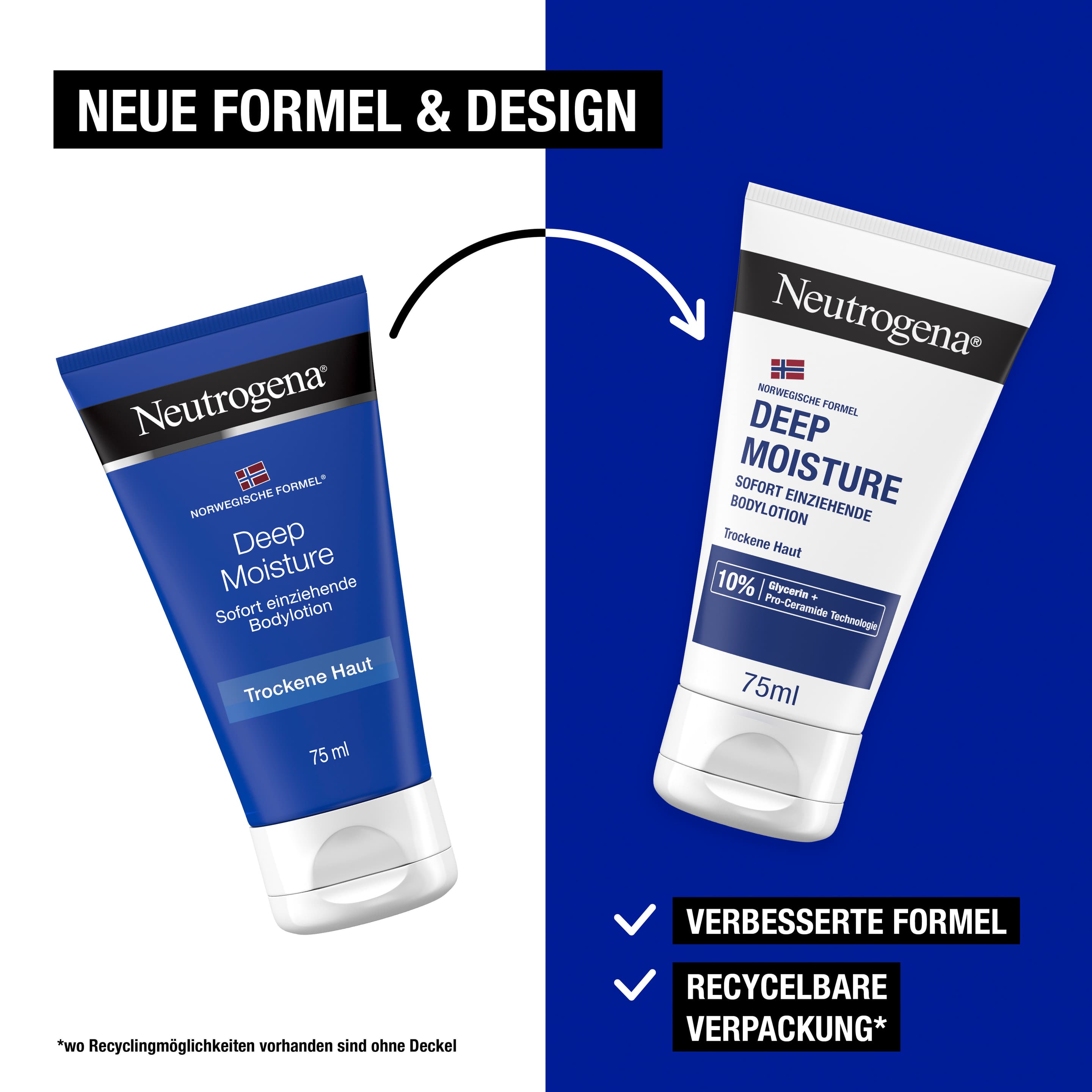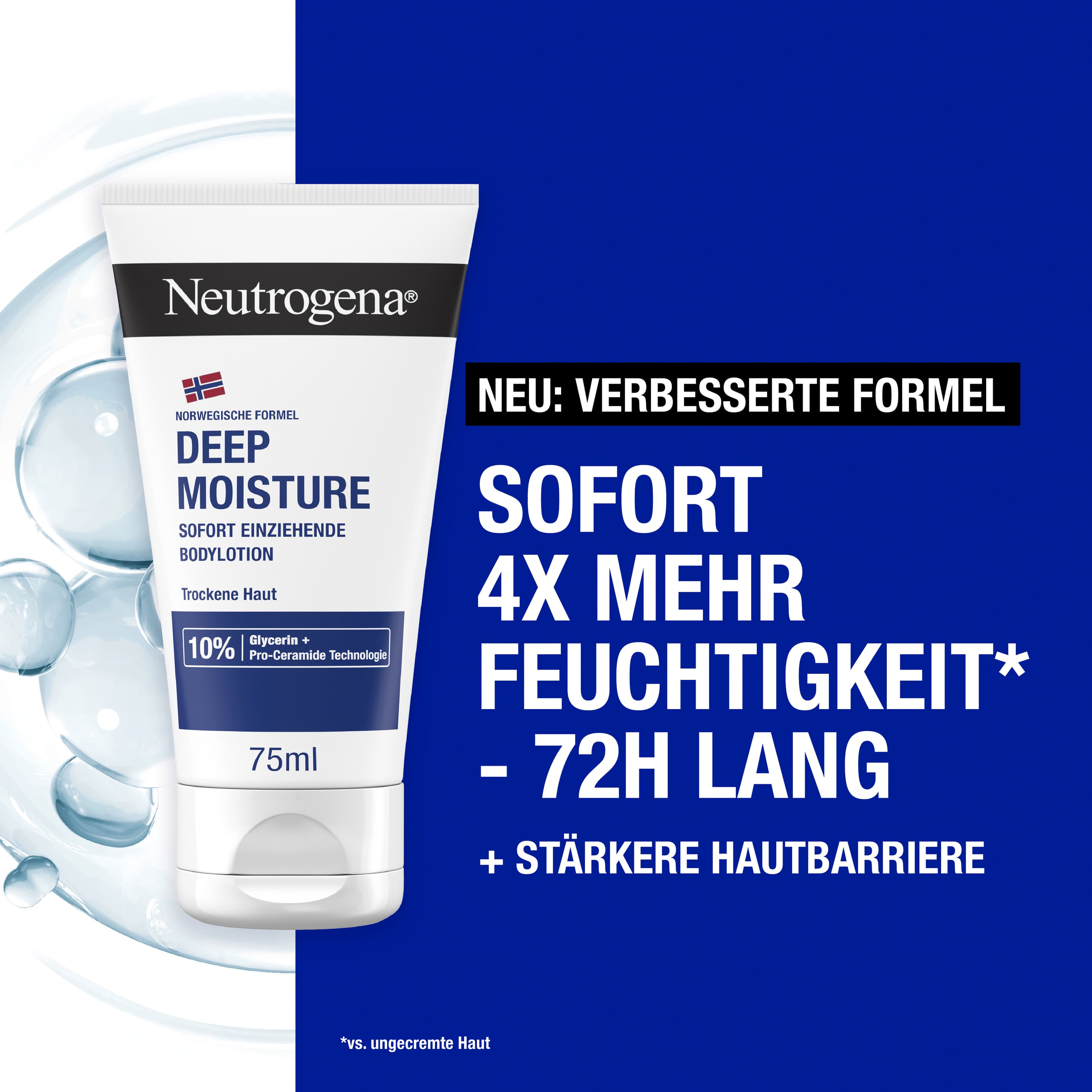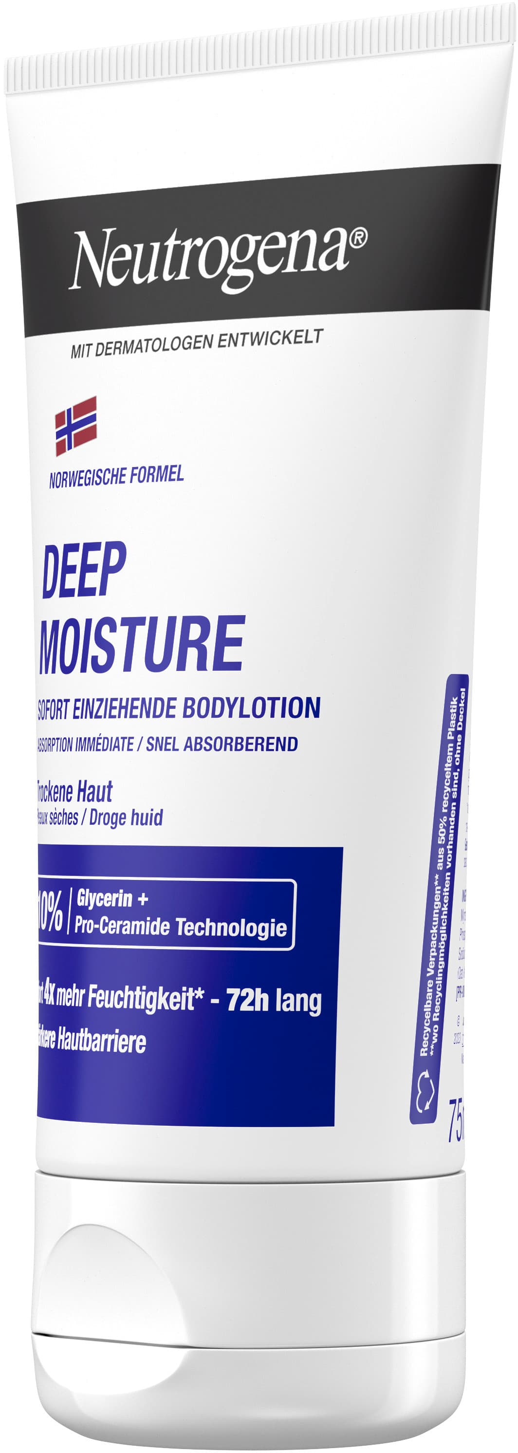- 72h intensive Feuchtigkeit – Die besondere Neutrogena Deep Moisture Bodylotion für trockene Haut mit der norwegischen Formel stärkt die Hautbarriere&spendet sofort 4x mehr Feuchtigkeit*. (*vs. ungecremte Haut)
