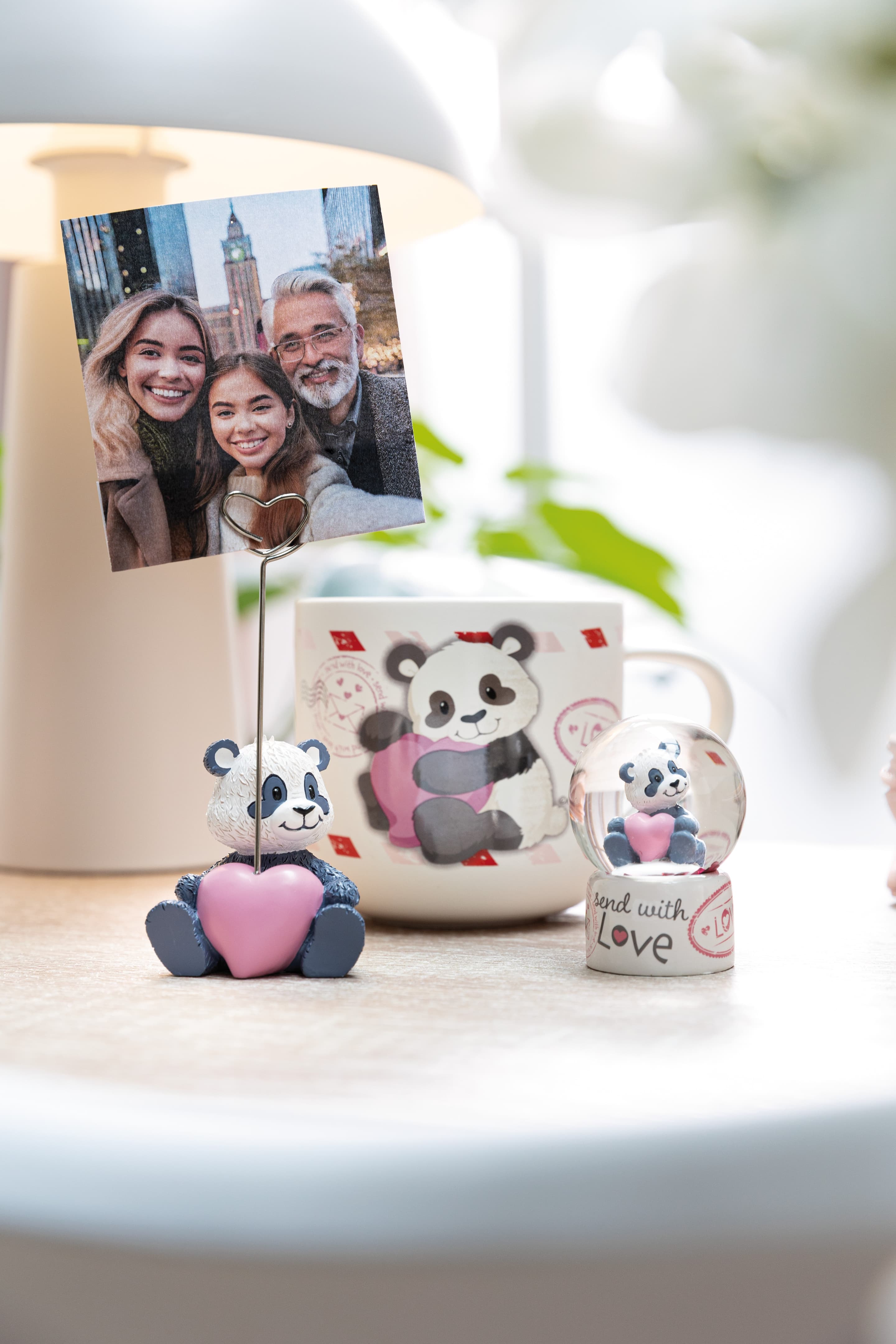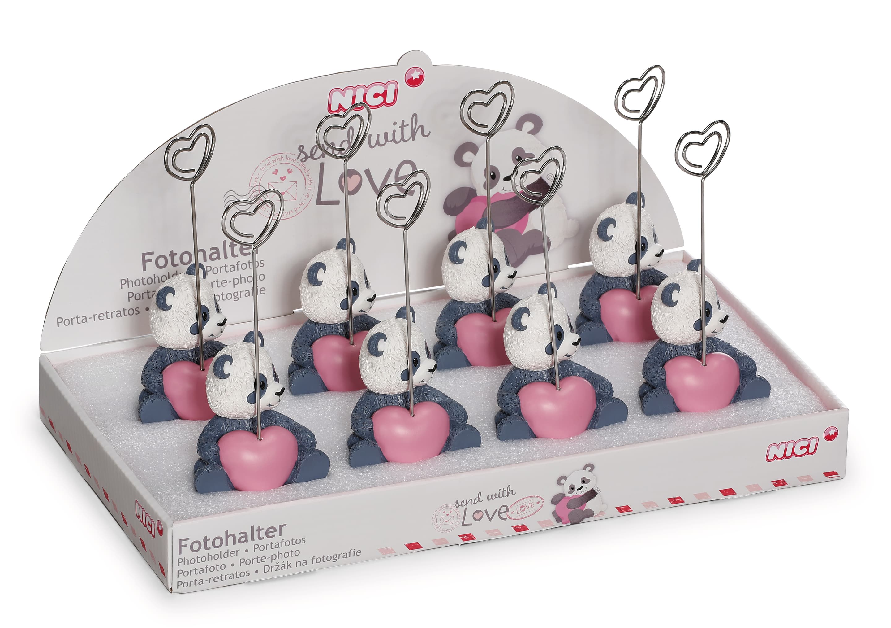 Kleine Geschenke erhalten bekanntlich die Freundschaft - und die Liebe sowieso. Der zuckersüße Fotohalter aus der Love Classic Kollektion von NICI bringt Freude und zaubert ein Lächeln ins Gesicht. Der charmante Love Panda hält ein großes rosa Herz vor seinen dicken Bäuchlein, in dem ein stabiler Draht steckt. Am Ende des Drahtes befindet sich eine herzförmige Metallklammer, die sich hervorragend dazu eignet, unvergessliche Momente festzuhalten. Dieser Fotohalter ist nicht nur praktisch, sondern auch ein liebevolles Dekorationsstück, das jeden Raum mit einer Portion Herz und Freude bereichert. Ideal als Geschenk für besondere Anlässe oder einfach, um einem lieben Menschen eine kleine Freude zu bereiten.