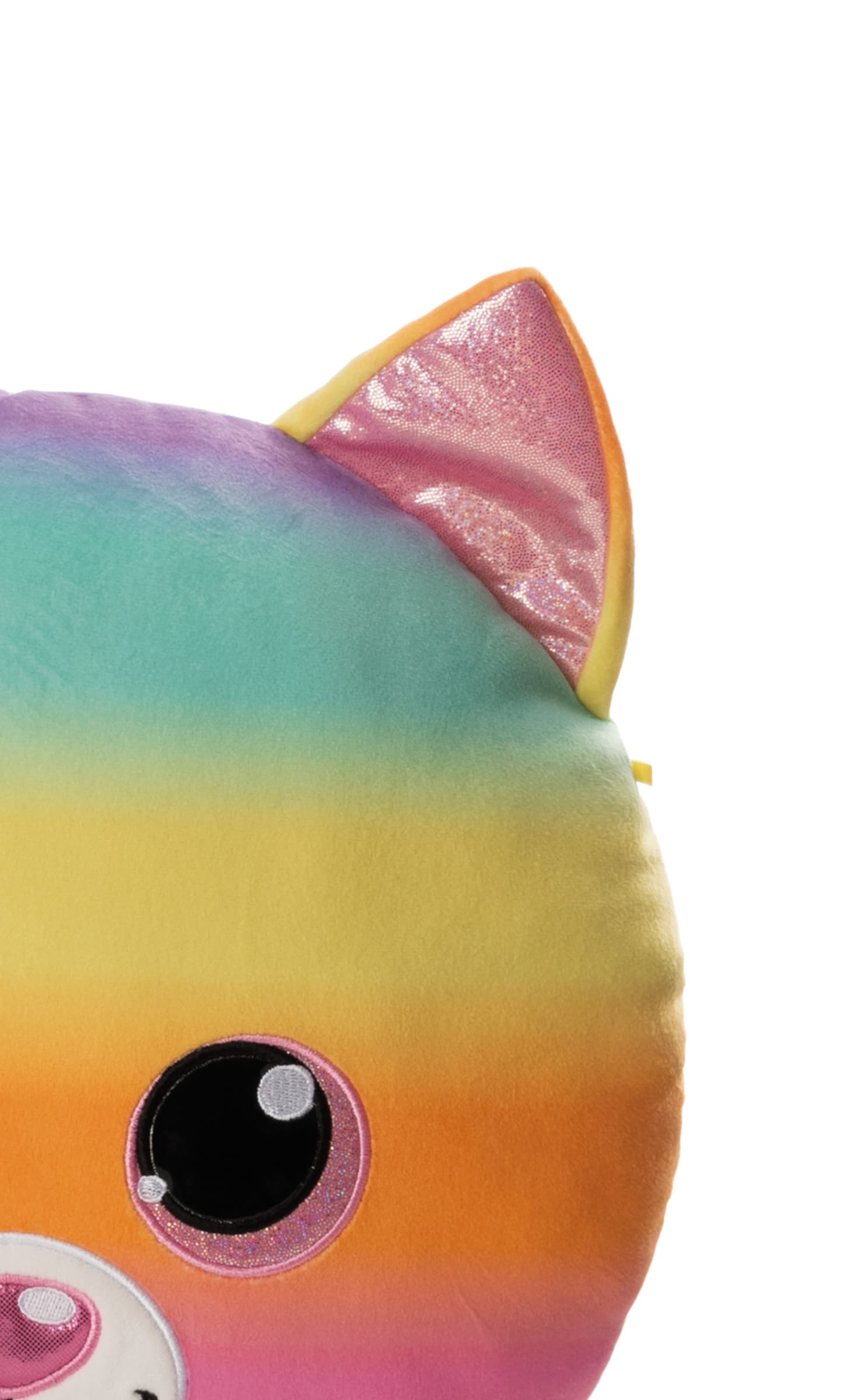 Bunt wie ein Regenbogen präsentiert sich das runde GLUBSCHIS Katze Miss Mellie Kissen, das ein superflauschiger und bequemer Begleiter ist, der aus besonders softem NICI-Plüschmaterial besteht. In Form des niedlichen Katzen-Kopfes ist dieses Kissen nicht nur ideal zum Kuscheln, sondern auch ein wunderschöner Blickfang und Dekoelement fürs Sofa oder Bett. Das ausgefallene GLUBSCHIS Katze Miss Mellie Kissen begeistert mit den bunten Regenbogenfarben, einem niedlichen Gesichtsausdruck, pinken Glitzeraugen, einer rosa glänzenden Nase und den süßen Öhrchen aus Glitzermaterial. Das Kissen ist Kuschelkissen für unterwegs, bequeme Kopfunterlage beim Lesen oder Schlafen oder einfach ein weiteres Sammelobjekt für die eigene GLUBSCHIS Plüschwelt. Das perfekte Geschenk für kleine und große GLUBSCHIS Fans. (c) 2024 Carletto, licensed by NICI GmbH