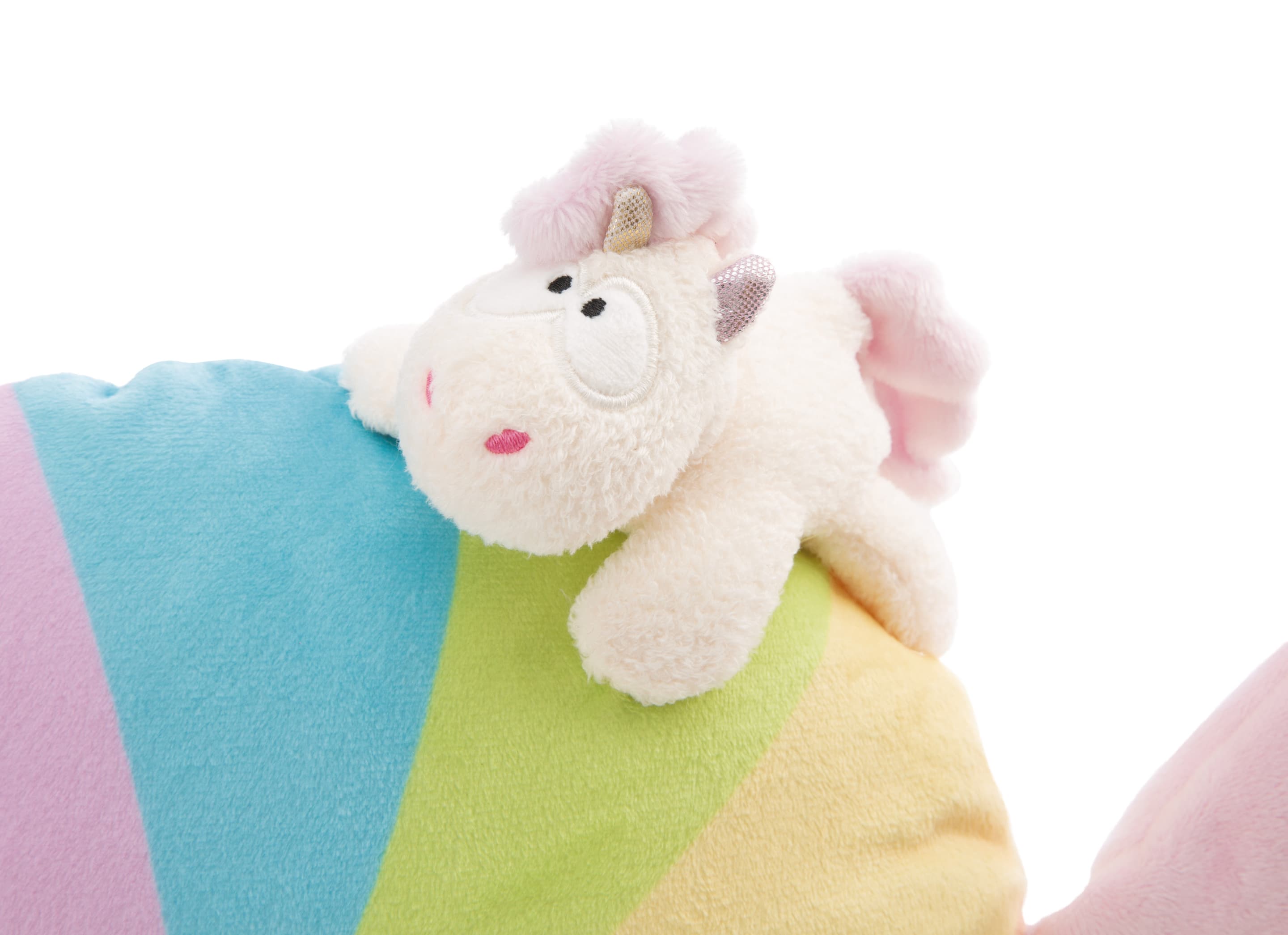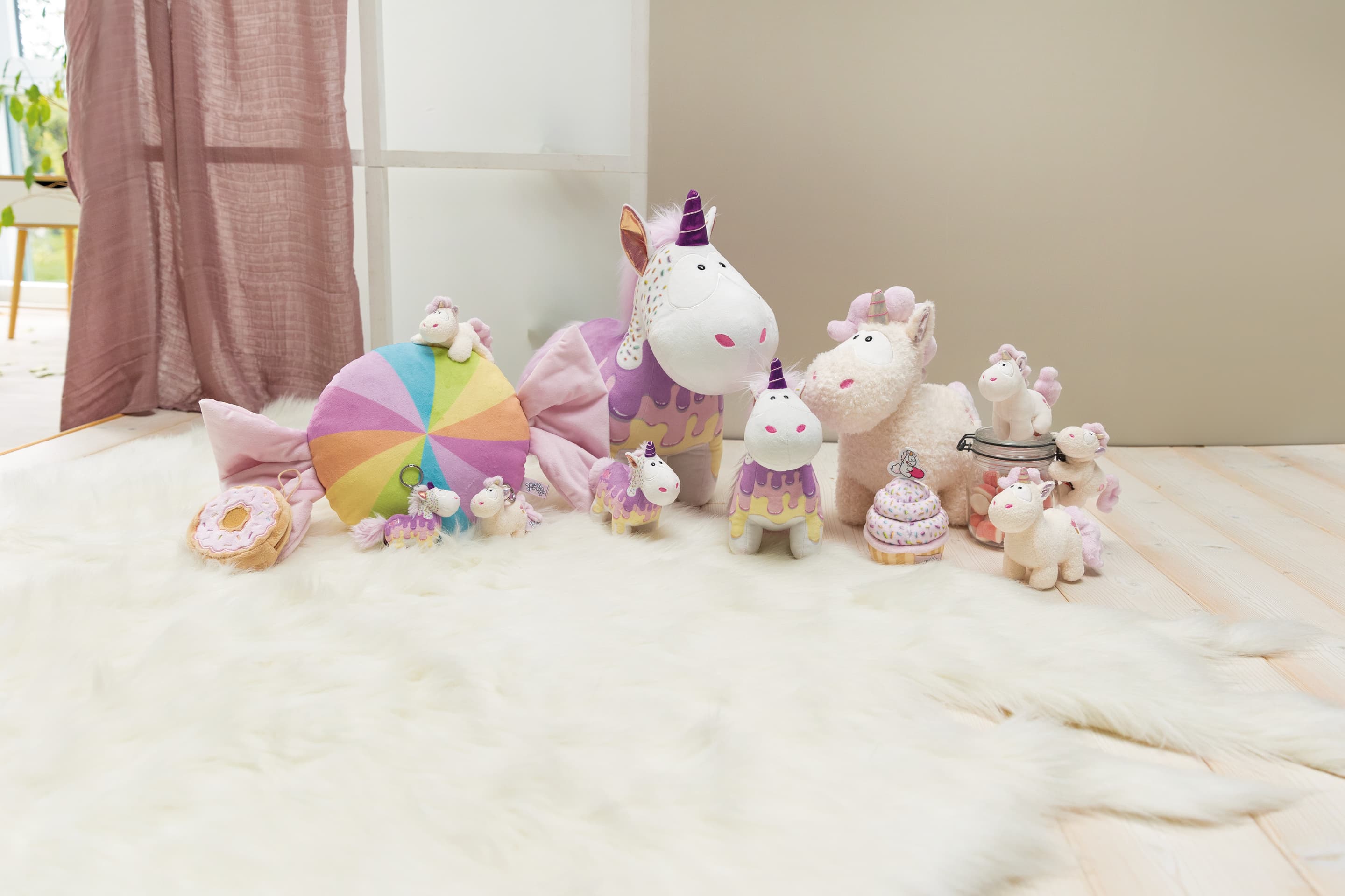 Mit dem flauschig weichen Plüschkissen in Bonbonform zaubert man einen Hauch von Magie und Bonbonspaß in jeden Raum! In zauberhaften Regenbogen-Pastellfarben gestaltet, ist dieses Kissen nicht nur ein Blickfang, sondern auch der perfekte Begleiter zum Entspannen und Kuscheln. Das Highlight dieses einzigartigen Kissens ist das 12cm große Plüsch-Einhorn Creamy Pink. Mit seinem strahlend weißen Lockenplüsch und der zartrosa Mähne und dem Schweif aus hochwertigem Plüschmaterial wird es schnell zum Lieblingsbegleiter für kleine und große Einhornfans. Ob als gemütliches Kissen zum Relaxen auf dem Sofa, als dekoratives Element im Kinderzimmer oder als Einschlafhilfe - dieses Plüschkissen bietet unzählige Möglichkeiten für Spaß und Geborgenheit. Die sanften Pastellfarben schaffen eine beruhigende Atmosphäre und laden zum Träumen ein. Als Geschenk lässt es garantiert Herzen höher schlagen und sorgt für viele Kuschelmomente! Das Kissen ist Teil der NICI GREEN Produktwelt. Für NICI GREEN Produkte verwenden wir fast ausschließlich Plüsch- und Füllstoffe, die aus recycelten Materialien bestehen. Hierfür werden vor allem alte PET-Flaschen zu RPET verarbeitet.