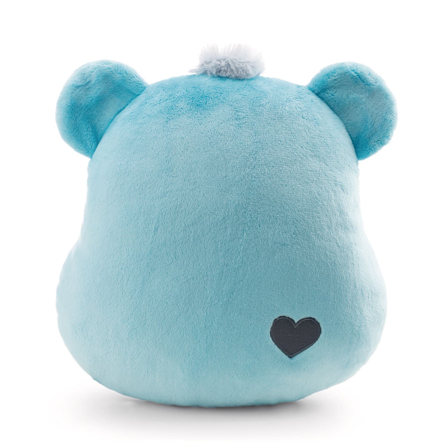 Angesagt, kuschelig und praktisch – das flauschige Glücksbärchi-Kissen in Form von Brummbärchis Kopf ist aus hochwertigem, kuschelweichen NICI-Plüsch gefertigt und begeistert kleine und große Fans und Sammler der knuddeligen Bären aus dem Wolkenland. Mit seiner blauen Farbe, dem einzigartigen Gesicht und einem gestickten Herzchen auf der Rückseite bringt es Glücksbärchis Atmosphäre und ein Gefühl von Geborgenheit in jedes Zuhause. Ob als dekoratives Accessoire auf dem Sofa, zum Kuscheln im Bett oder als liebevolles Geschenk – dieses Kissen ist ein echter Hingucker und sorgt für ein fröhliches Ambiente.