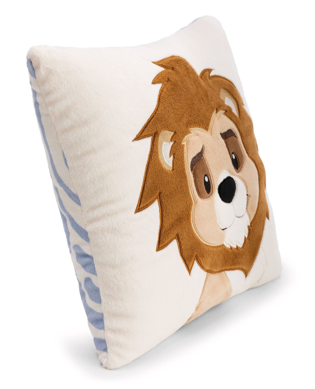 Das quadratische Plüschkissen mit dem freundlich lächelnden Löwen King Kimari auf der Vorderseite und einem pastelligen Muster auf der Rückseite verbindet liebevolles Design mit höchster Qualität und ist ein besonderer Blickfang. Die hochwertige Plüschapplikation zeigt den prächtigen Löwenkopf mit majestätischer Mähne und verleiht dem Kissen eine charmante und einladende Ausstrahlung. Es ist kuschelweich aus hochwertigem NICI-Plüsch gefertigt und lädt zum gemütlichen Anlehnen und Träumen ein. Dank seines handlichen Formats ist es der ideale Begleiter für unterwegs: Es lässt sich mühelos unter den Arm klemmen und ist somit perfekt für Reisen, Ausflüge oder einfach zum Mitnehmen im Alltag. Als liebevolles Geschenk eignet sich dieses Kissen für alle, die Komfort und fröhliches Design schätzen. Das Kissen ist Teil der NICI GREEN Produktwelt. Für NICI GREEN Produkte verwenden wir fast ausschließlich Plüsch- und Füllstoffe, die aus recycelten Materialien bestehen. Hierfür werden vor allem alte PET-Flaschen zu RPET verarbeitet.