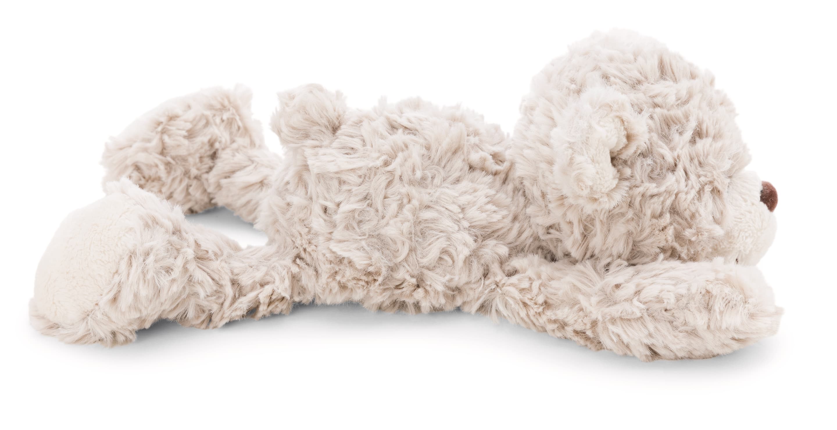 Finni, der kuschelige Plüschbär aus der NICI Bears & Friends Kollektion, ist nicht nur flauschig und charmant, er erobert auch die Herzen aller Teddyfans im Sturm! Mit seinem lockigen, grauen Plüsch sieht er aus, als wäre er direkt aus einem Wolkenbett gefallen. Und mal ehrlich, wer kann diesem freundlichen Gesicht schon widerstehen? Finni hat es sich mit seinen langen, schlenkernden Armen und Beinen auf seinem Bäuchlein so richtig gemütlich gemacht - wahrscheinlich nach einem langen Tag voller Kuscheln und Schmusen. Er lässt Kinderherzen höher schlagen und sorgt dafür, dass auch die Großen wieder zu Kindern werden. Ideal zum Kuscheln, Mitnehmen und Verschenken! Der Bär ist Teil der NICI GREEN Produktwelt. Für NICI GREEN Produkte verwenden wir fast ausschließlich Plüsch- und Füllstoffe, die aus recycelten Materialien bestehen. Hierfür werden vor allem alte PET-Flaschen zu RPET verarbeitet.