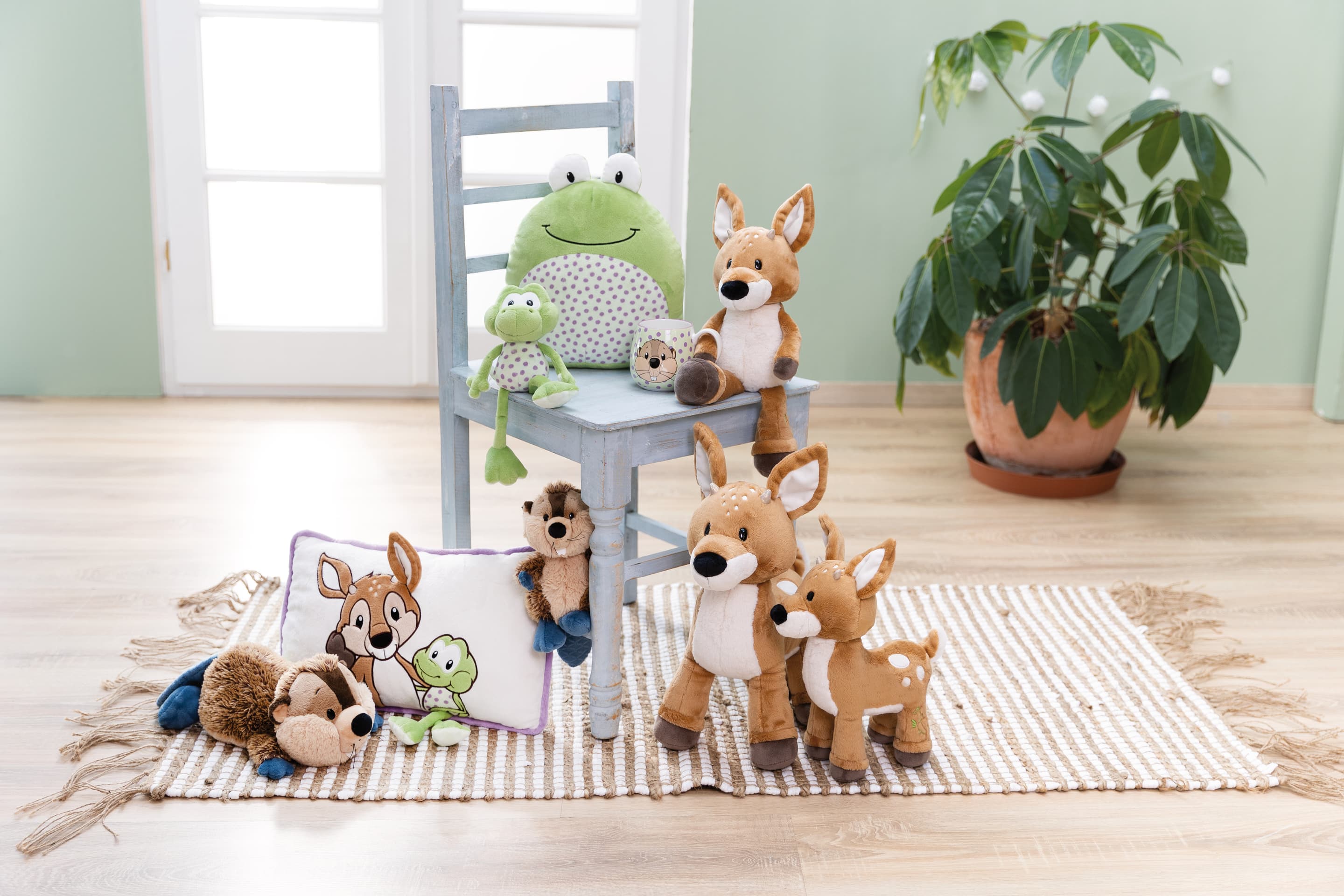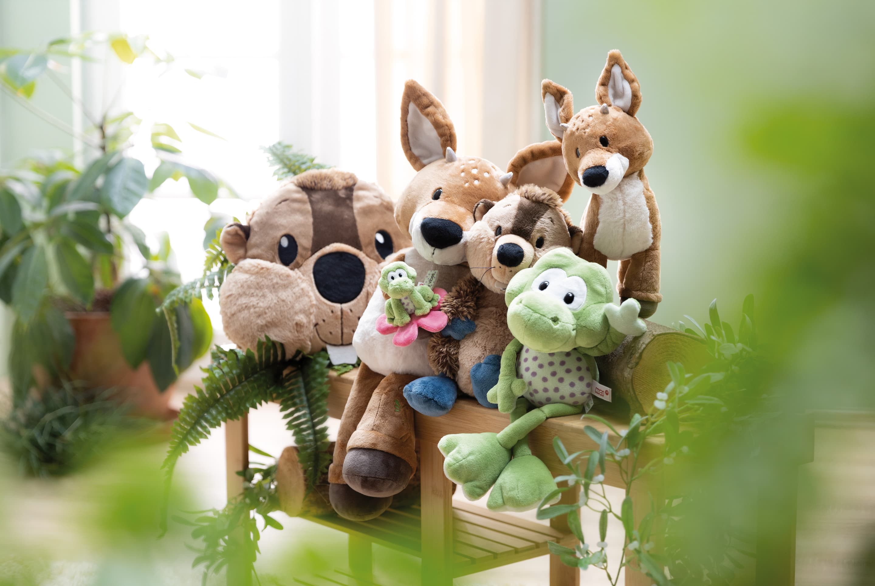 Bereit für jede Menge Spaß mit Harry Woodsnacker, dem Forest Friends Biber?  Der lustige Biber aus hochwertigem, flauschigem NICI Plüsch in einem warmen Braunton ist nicht nur ein echter Hingucker, sondern auch ein Meister der Gemütlichkeit. Getreu dem Motto: Durchbeißen ist alles, schenkt Harry jedem ein ganz besonderes Lächeln, denn aus seinem Mäulchen ragen zwei strahlend weiße Nagezähne - perfekt für alle, die ein bisschen Biber-Charme in ihr Leben bringen möchten. Und die Schnurrhaare? Die sind nicht nur zum Angeben da, sondern verleihen ihm einen ganz eigenen, witzigen Charakter! Sein breiter Biberschwanz in leuchtendem Blau aus Effektplüsch sorgt für den ultimativen Wow-Faktor und macht ihn zum coolsten Biber der Stadt. Die blauen Pfötchen und Füße setzen einen fröhlichen Farbkontrast zum braunen Fell. Ob als treuer Begleiter im Alltag, als kuscheliger Freund zum Einschlafen oder als süßes Deko-Tier - Biber Harry Woodsnacker ist für alle da und das perfekte Geschenk für Plüschtier-Fans jeden Alters. Der Biber ist Teil der NICI GREEN Produktwelt. Für NICI GREEN Produkte verwenden wir fast ausschließlich Plüsch- und Füllstoffe, die aus recycelten Materialien bestehen. Hierfür werden vor allem alte PET-Flaschen zu RPET verarbeitet.