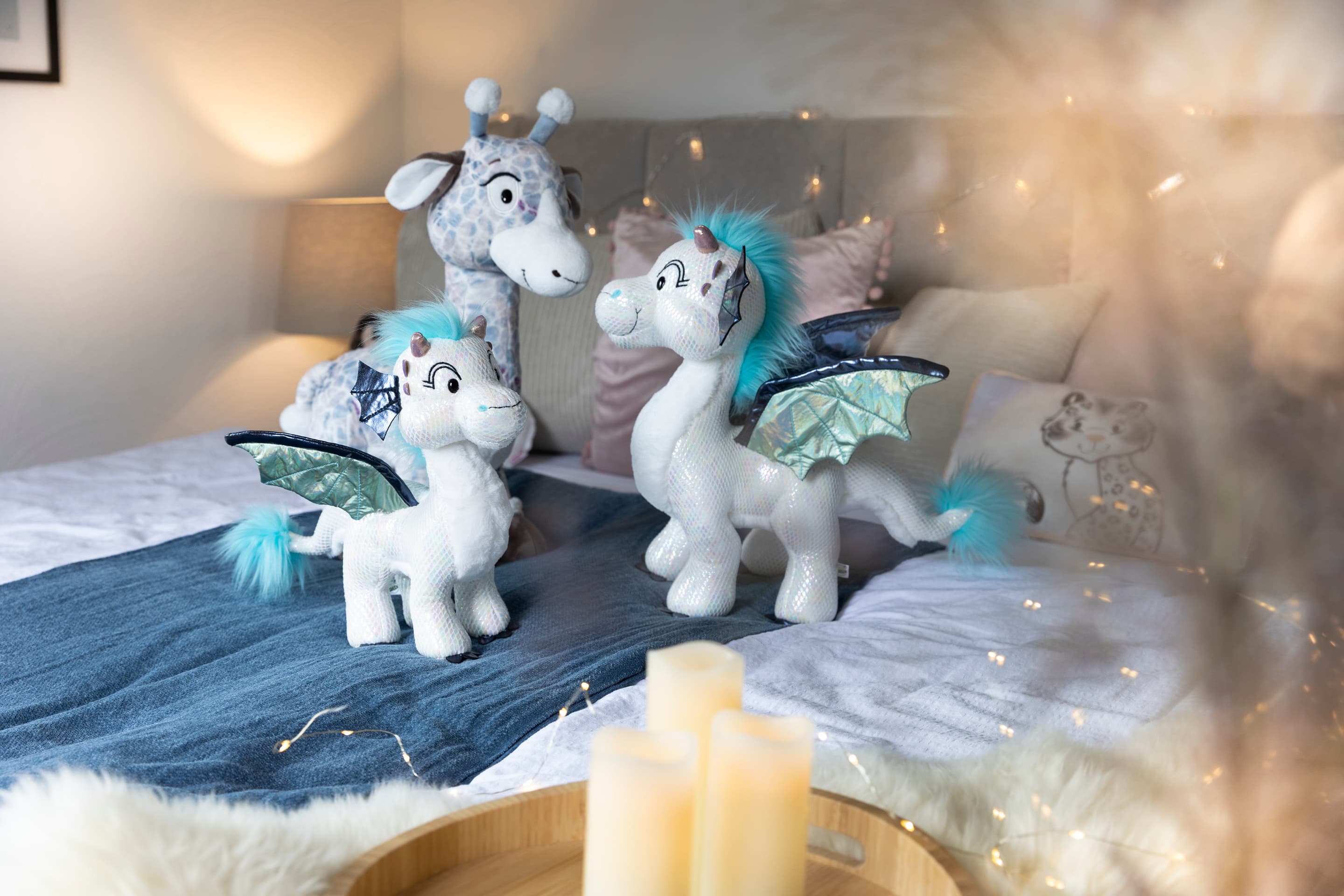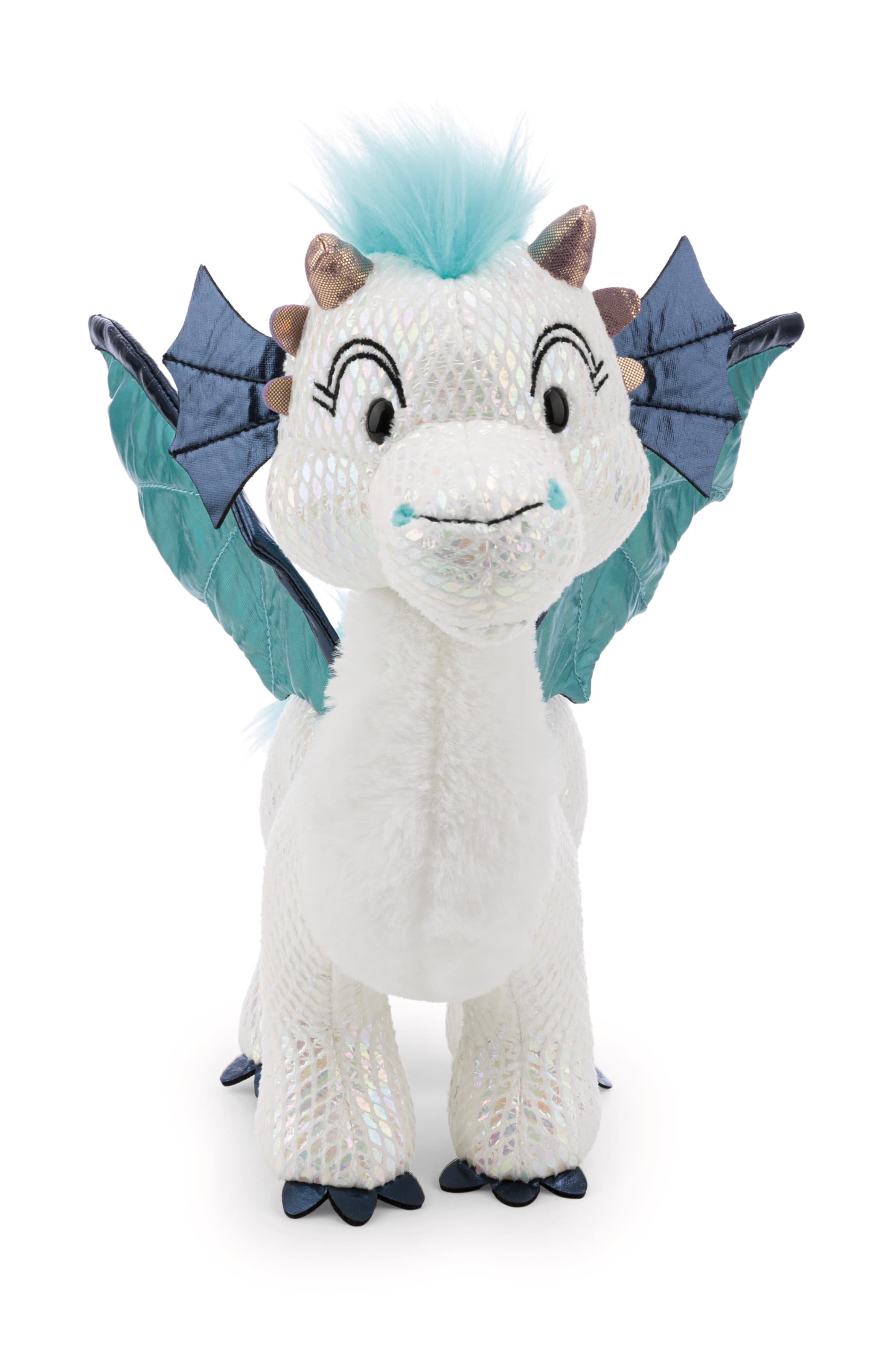 Perlmuttschimmernd und mit leuchtenden Augen präsentiert sich Drache Zafura aus der Wild Winter Kollektion von NICI. Das Drachenmädchen aus softem, schneeweißem NICI Plüsch schimmert und funkelt je nach Lichteinfall wie ein edler Kristall, in dem sich das Licht auf magische Weise bricht. Die funkelnden Akzente verleihen Zafura eine faszinierende Ausstrahlung, die jeden Raum erhellt und die Fantasie beflügelt. Majestätisch und elegant präsentiert sich Zafura mit ihren eisblauen und türkisfarbenen Flügeln, zwei glänzenden Hörnern auf der Stirn und flauschigen Puscheln an Kopf und Schwanz. Zafuras freundliches Gesicht leuchtet heller als der Nordstern und ihre aufrechte Körperhaltung machen das Drachenmädchen zu einer bezaubernden Begleiterin für abenteuerliche Rollenspiele und traumhafte Kuschelmomente. Mit dem Eisdrachen Zafura verschenkt man nicht nur ein wunderschönes Plüschtier, sondern auch ein Stück Magie und Fantasie, das Herzen höher schlagen lässt. Das Kuscheltier ist Teil der NICI GREEN Produktwelt. Für NICI GREEN Produkte verwenden wir fast ausschließlich Plüsch- und Füllstoffe, die aus recycelten Materialien bestehen. Hierfür werden vor allem alte PET-Flaschen zu RPET verarbeitet.