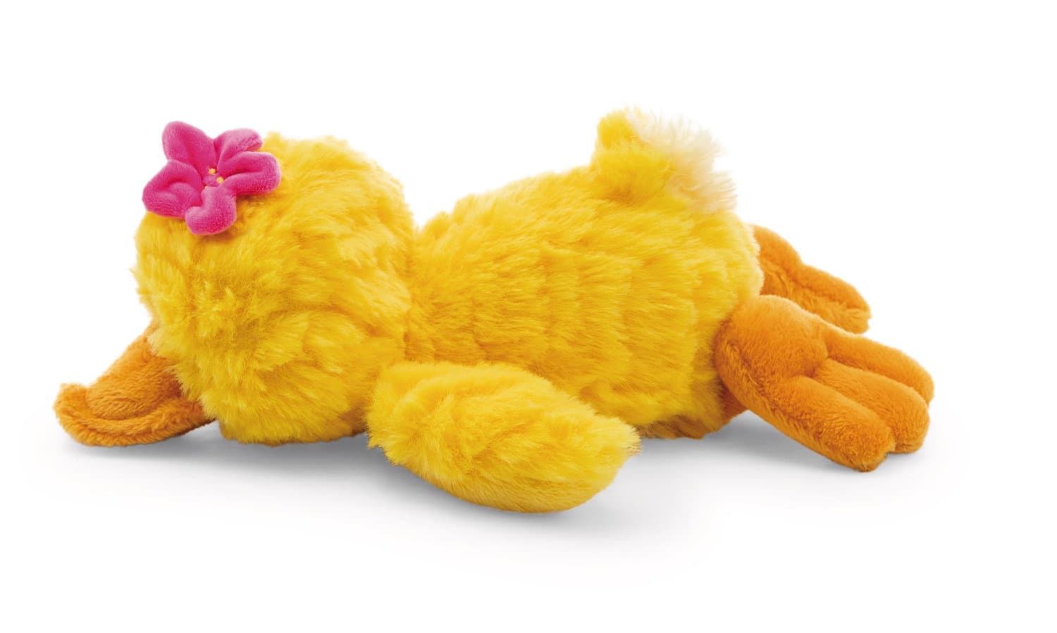 Pooline ist eine bezaubernde Ente, die mit ihrem liebevollen Design sofort alle Herzen erobert. Auf ihrem Kopf trägt sie eine auffällige, pinke Blüte, die ihr einen verspielten und süßen Look verleiht. Sie ist aus hochwertigem NICI-Plüsch gefertigt und besticht durch ihre liebevoll detaillierte Verarbeitung. Sie erstrahlt in einem kräftigen Gelb und hat eine strukturierte Plüsch-Oberfläche, die wie Entenfedern aussieht und ihr eine federleichte Optik verleiht. In liegender Position ist sie ideal zum Kuscheln, als Deko-Element oder einfach zum Verlieben. Dank ihres niedlichen Erscheinungsbilds ist Pooline ein wunderbares Geschenk für alle, die das Besondere schätzen – egal, ob jung oder alt. Die Ente ist Teil der NICI GREEN Produktwelt. Für NICI GREEN Produkte verwenden wir fast ausschließlich Plüsch- und Füllstoffe, die aus recycelten Materialien bestehen. Hierfür werden vor allem alte PET-Flaschen zu RPET verarbeitet.