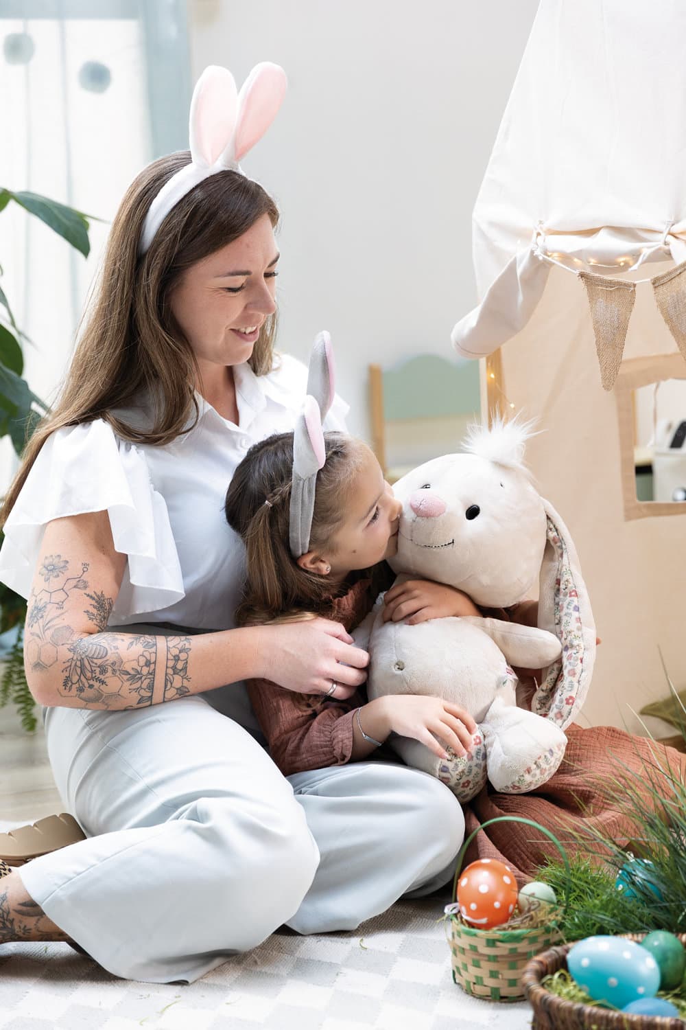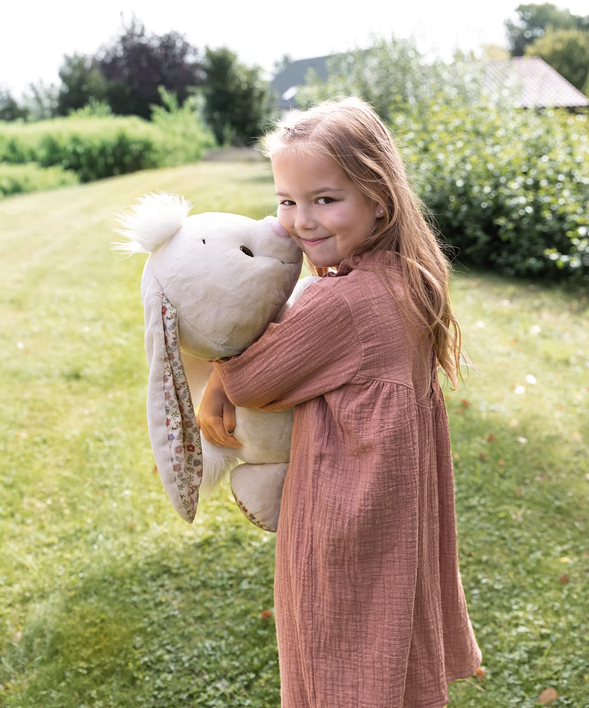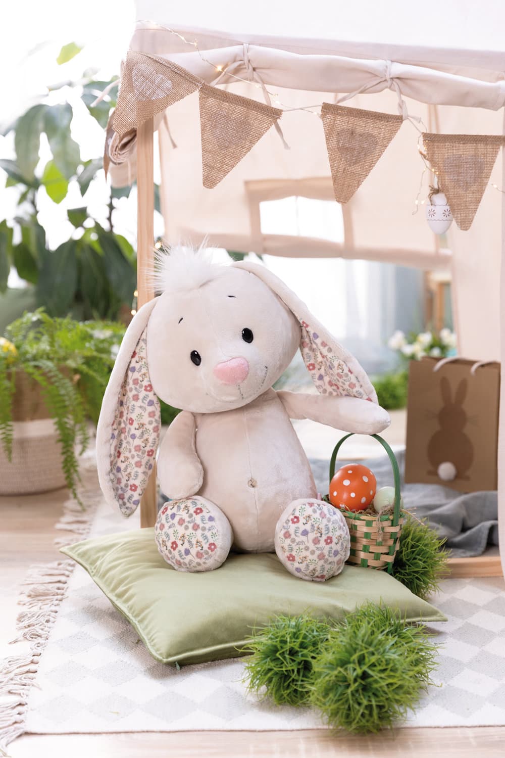 Der Kuschelhase My NICI Bunny ist mit seinen beeindruckenden 50cm ein echter Hingucker in jedem Zuhause. Er ist so weich und kuschelig, dass er für echte Hasenfreunde schnell zum Lieblingsbegleiter wird. Der cremefarbene Mümmelmann mit rosa Näschen und freundlichem Gesicht besticht durch seine langen Schlappohren, die an Niedlichkeit kaum zu überbieten sind. Die Innenseite der Ohren und die Unterseite der Füße sind mit einem bunten Blumendekor verziert, das dem Hasen einen fröhlichen Look verleiht. Ein lustiger Puschel auf dem Kopf und das süße Schwänzchen aus langflorigem, weißem Plüsch runden sein unwiderstehliches Erscheinungsbild ab. Der XL-Kuschelhase ist ein Traum für jeden Plüschtier-Fan und eignet sich hervorragend als Ostergeschenk. Der Hase ist Teil der NICI GREEN Produktwelt. Für NICI GREEN Produkte verwenden wir fast ausschließlich Plüsch- und Füllstoffe, die aus recycelten Materialien bestehen. Hierfür werden vor allem alte PET-Flaschen zu RPET verarbeitet.