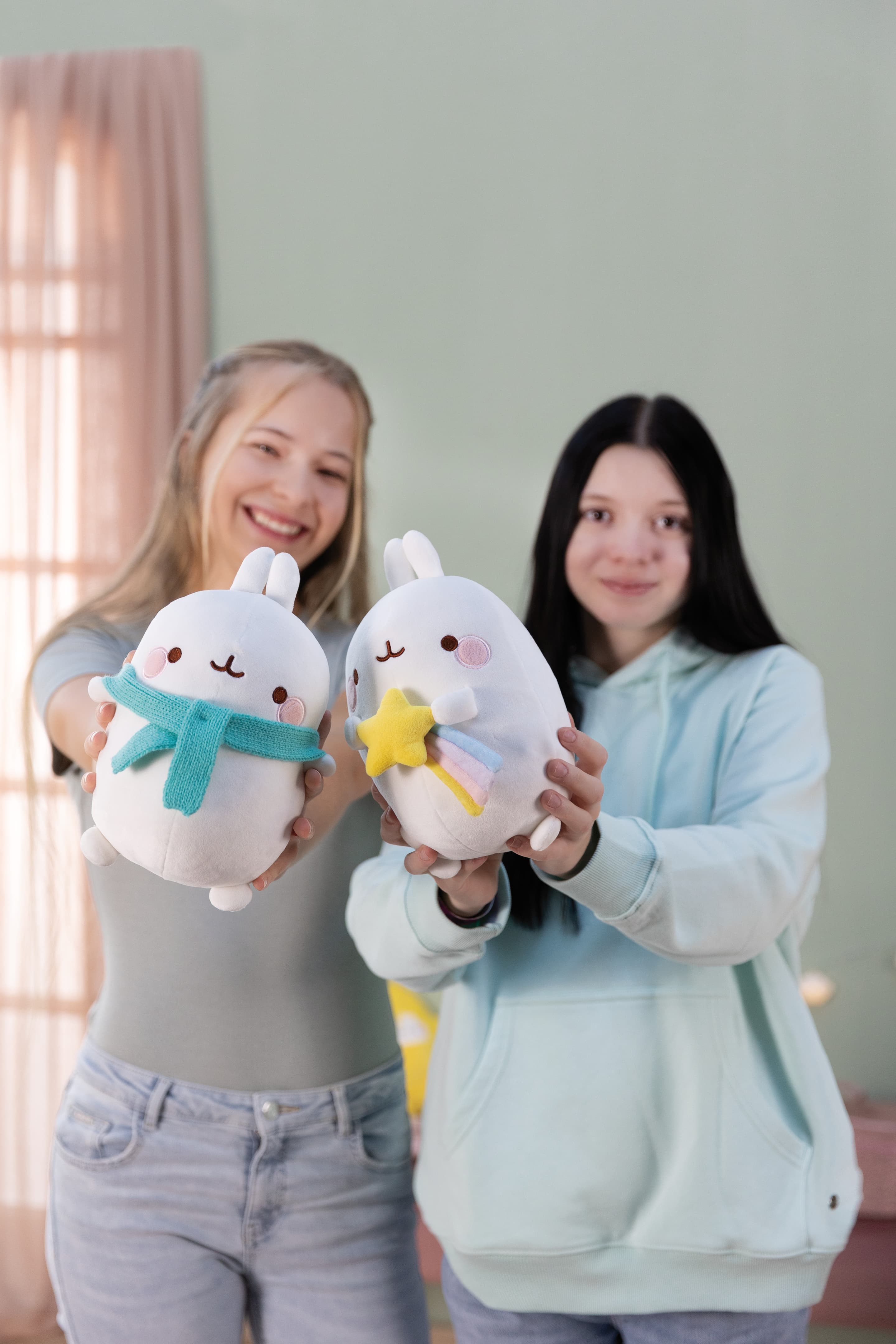 Der Winter kann kommen! Molang, der liebenswerte Charakter aus der gleichnamigen TV-Serie und bekannt bei Kids und jungen Erwachsenen aus Social Media, kommt passend zur Jahreszeit mit einem türkisfarbenen Strickschal um den Hals. Sein niedlicher Look, der super flauschige, weiße NICI Softplüsch und nicht zuletzt die besonders weiche Füllung, die ihn so unsagbar knuffig macht, lassen Molang zum unverzichtbaren Begleiter und liebenswerten Kuschelfreund werden. In der passenden Geschenkverpackung ist Molang ein wunderbares Geschenk für kleine und große MOLANG Fans.