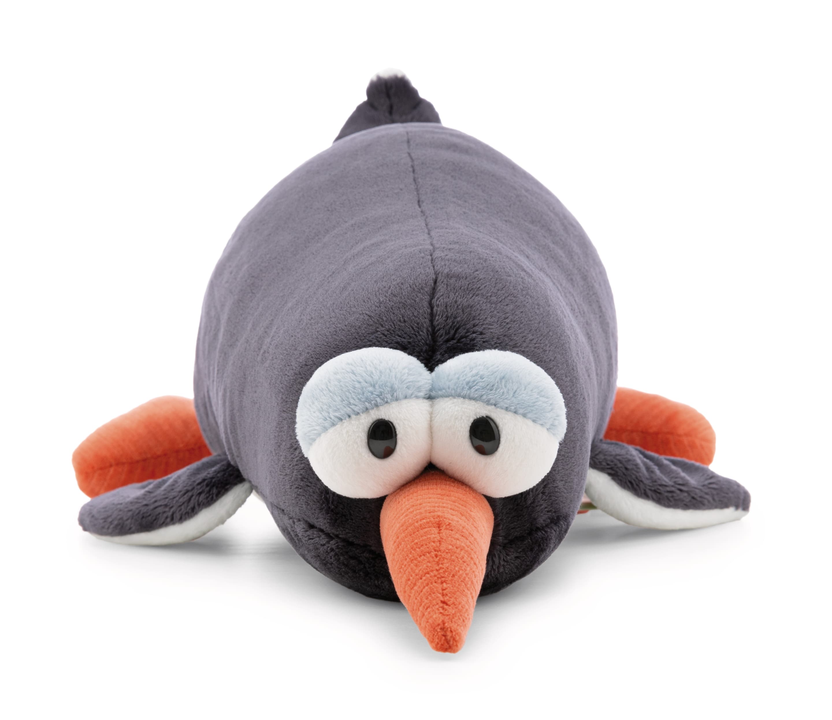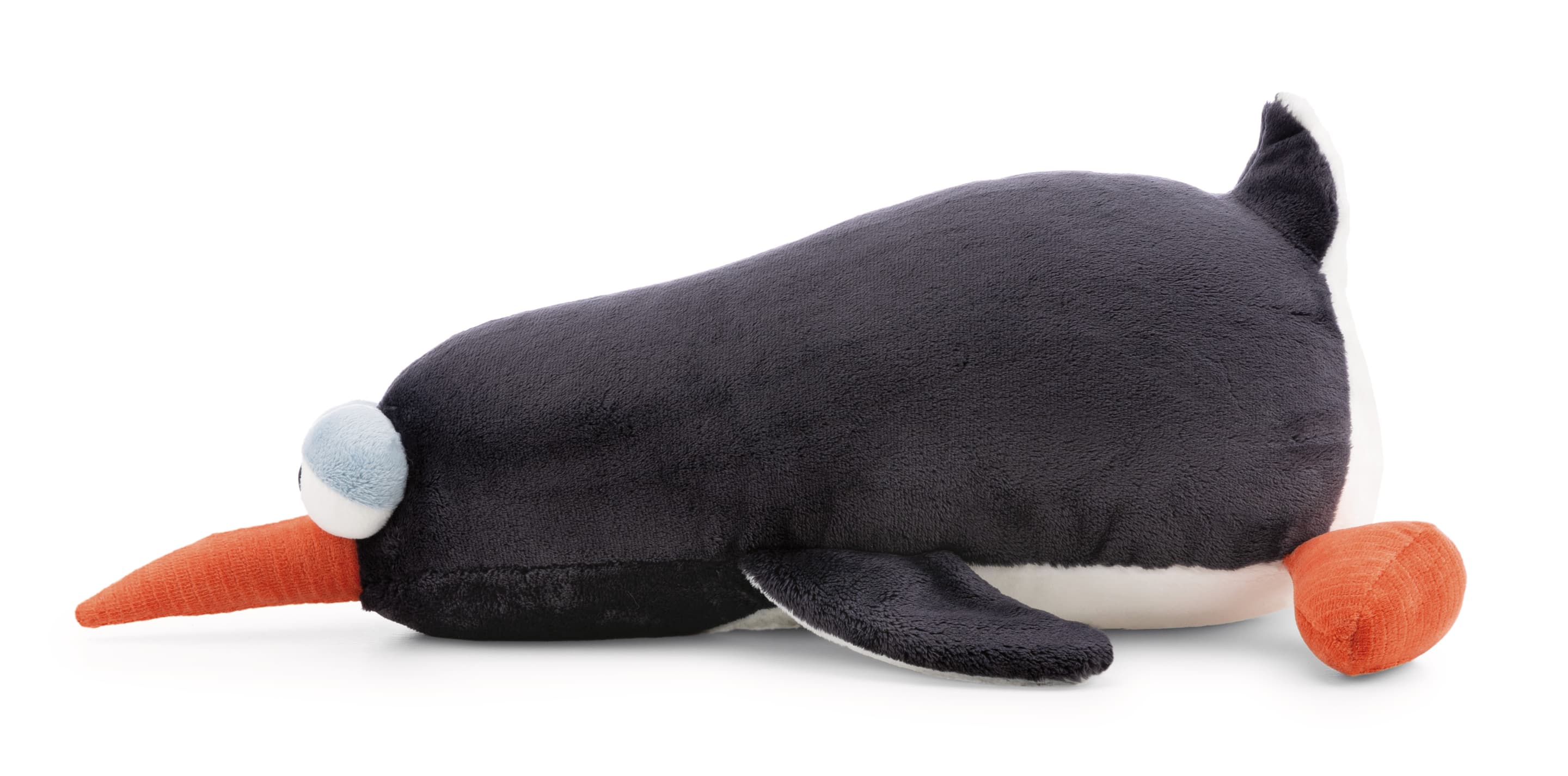 Mach Platz für Jorge Thunder, den lustigen Plüsch-Pinguin aus der Wild Winter Kollektion von NICI, der es sich auf seinem dicken Bauch gemütlich macht! Der anthrazitfarbene Flauschball aus hochwertigem NICI Plüsch hat einen kuscheligen Körper, der einfach zum Schmusen einlädt. Mit seinen kleinen Flügeln, den knallig orangefarbenen Füßchen und den lustigen eisblauen Kulleraugen ist er nicht nur ein echter Hingucker, sondern auch ein Meister der Entspannung! Dieser Pinguin hat das Faulenzen perfektioniert! Während andere Pinguine herumflitzen, liegt er einfach zufrieden auf seinem Bauch und genießt das Leben in vollen Zügen. Sein langer, orangefarbener Schnabel ist nicht nur ein stylischer Eyecatcher, sondern auch ideal, um beim nächsten Snack einen kleinen „Pinguin-Tipp“ zu geben - vielleicht ein paar leckere Fische? Ob als treuer Kuschelgefährte, als witziger Blickfang im Kinderzimmer oder als perfektes Geschenk für alle, die das Leben nicht ganz so ernst nehmen - dieser Pinguin zaubert garantiert ein Lächeln auf jedes Gesicht! Das Kuscheltier ist Teil der NICI GREEN Produktwelt. Für NICI GREEN Produkte verwenden wir fast ausschließlich Plüsch- und Füllstoffe, die aus recycelten Materialien bestehen. Hierfür werden vor allem alte PET-Flaschen zu RPET verarbeitet.