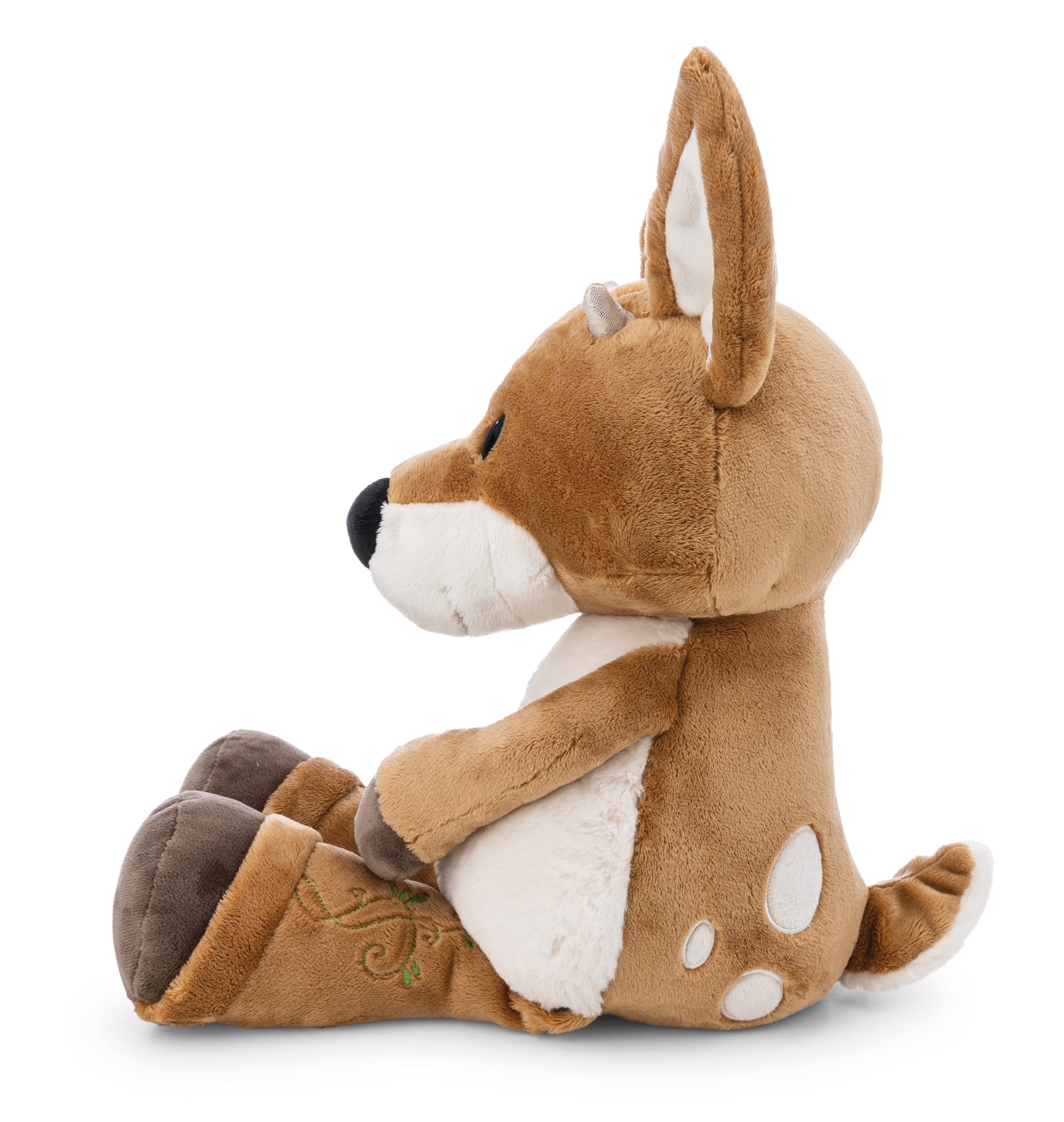 Zusammen mit seinen Freunden von NICIs Forest Friends liebt Rehbock René Roebuck die Gesellschaft von kleinen und großen Plüschtierfans! Dank seines zauberhaften Aussehens und seines kuschelig weichen Plüschfells in Braun und Weiß ist er der perfekte Spiel- und Schmusefreund. Mit seinen sanften Rehaugen, den süßen, glänzenden Hörnchen auf der Stirn, den großen Ohren und der detailverliebten Stickerei am Bein bringt das flauschige Böckchen die Herzen zum Schmelzen. Der Rehbock ist Teil der NICI GREEN Produktwelt. Für NICI GREEN Produkte verwenden wir fast ausschließlich Plüsch- und Füllstoffe, die aus recycelten Materialien bestehen. Hierfür werden vor allem alte PET-Flaschen zu RPET verarbeitet.