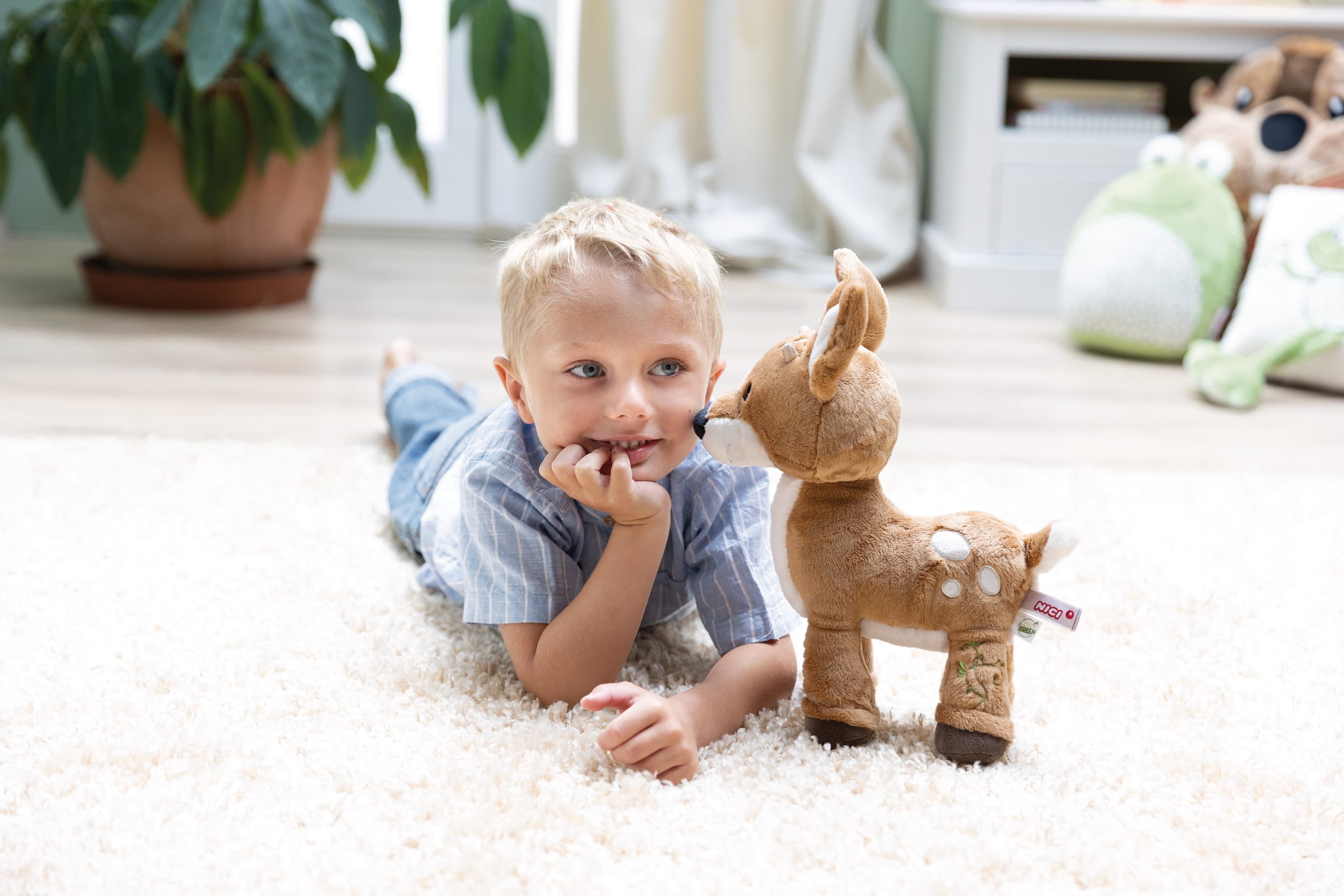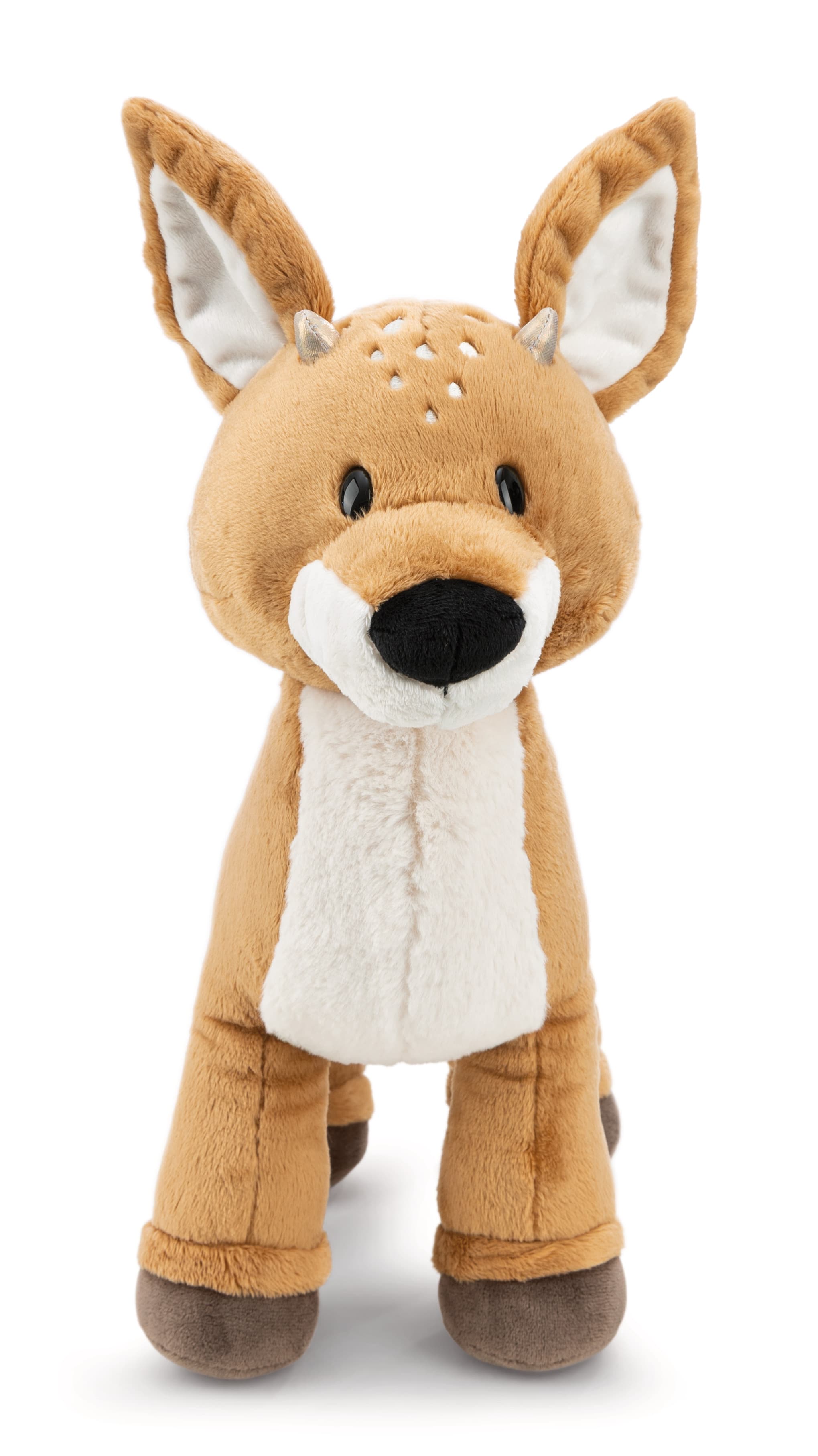 Der zauberhafte stehende Rehbock René Roebuck aus der Forest Friends Kollektion von NICI hat einen großen Traum: Er möchte einmal ein stolzer Hirsch sein! Mit seinem sanften Blick, den liebevoll gestalteten Details wie den sanften Rehaugen, den süßen, glänzenden Hörnchen auf der Stirn, den großen Ohren und der detailverliebten Stickerei am Bein sowie seinem kuschelweichen Plüschfell in Braun und Weiß strahlt er eine bezaubernde Anmut aus, die die Herzen kleiner und großer Plüschtierfans sofort erobert. René Roebuck ist der ideale Begleiter für abenteuerliche Spielmomente und ausgiebige Kuschelstunden. Der Rehbock ist Teil der NICI GREEN Produktwelt. Für NICI GREEN Produkte verwenden wir fast ausschließlich Plüsch- und Füllstoffe, die aus recycelten Materialien bestehen. Hierfür werden vor allem alte PET-Flaschen zu RPET verarbeitet.