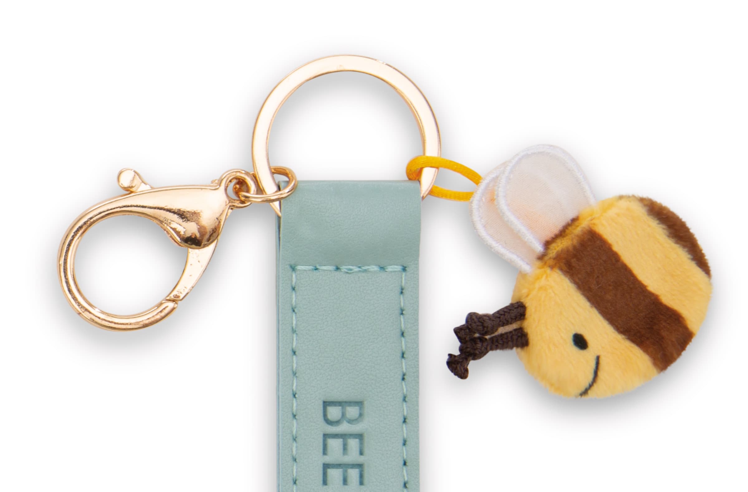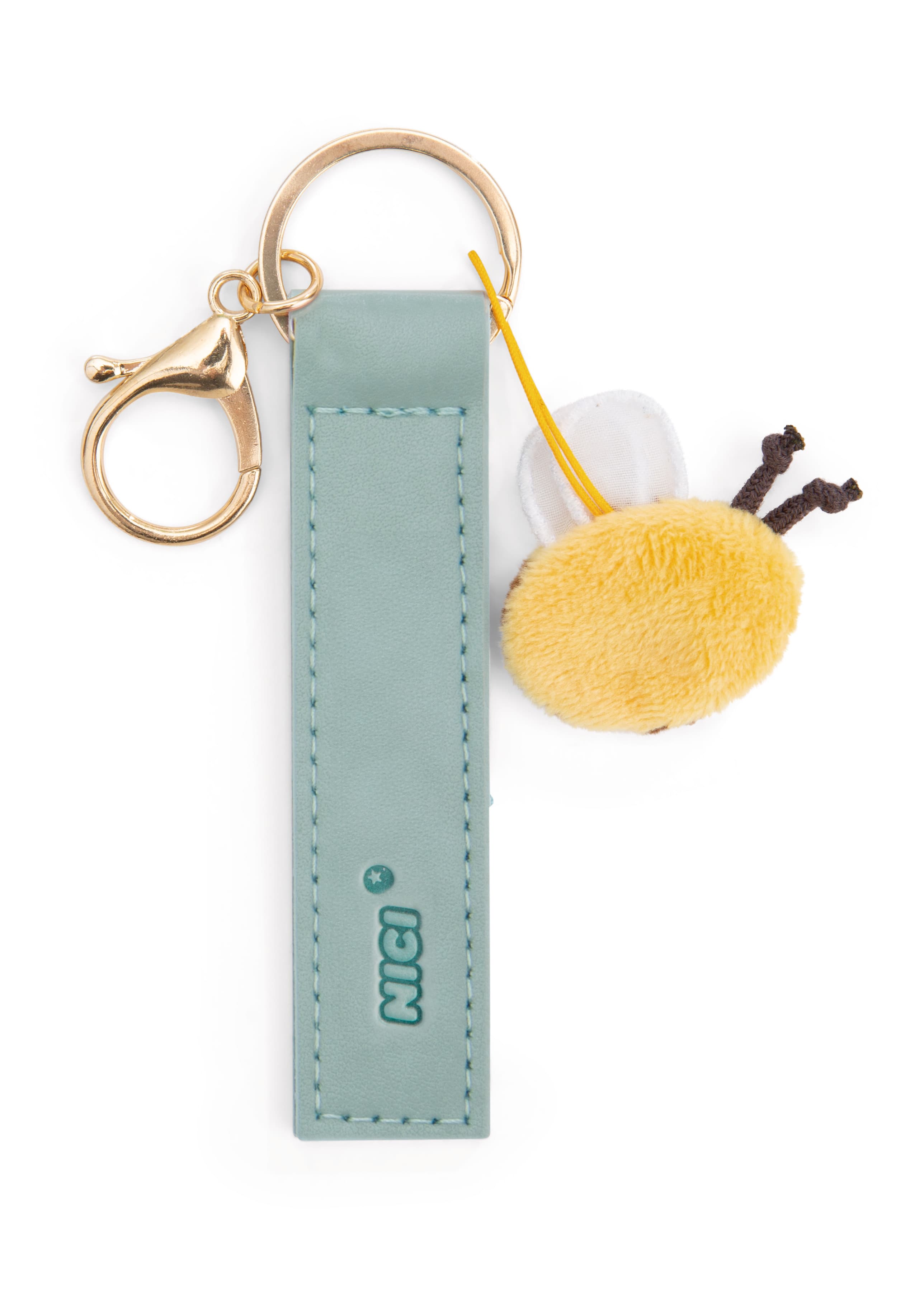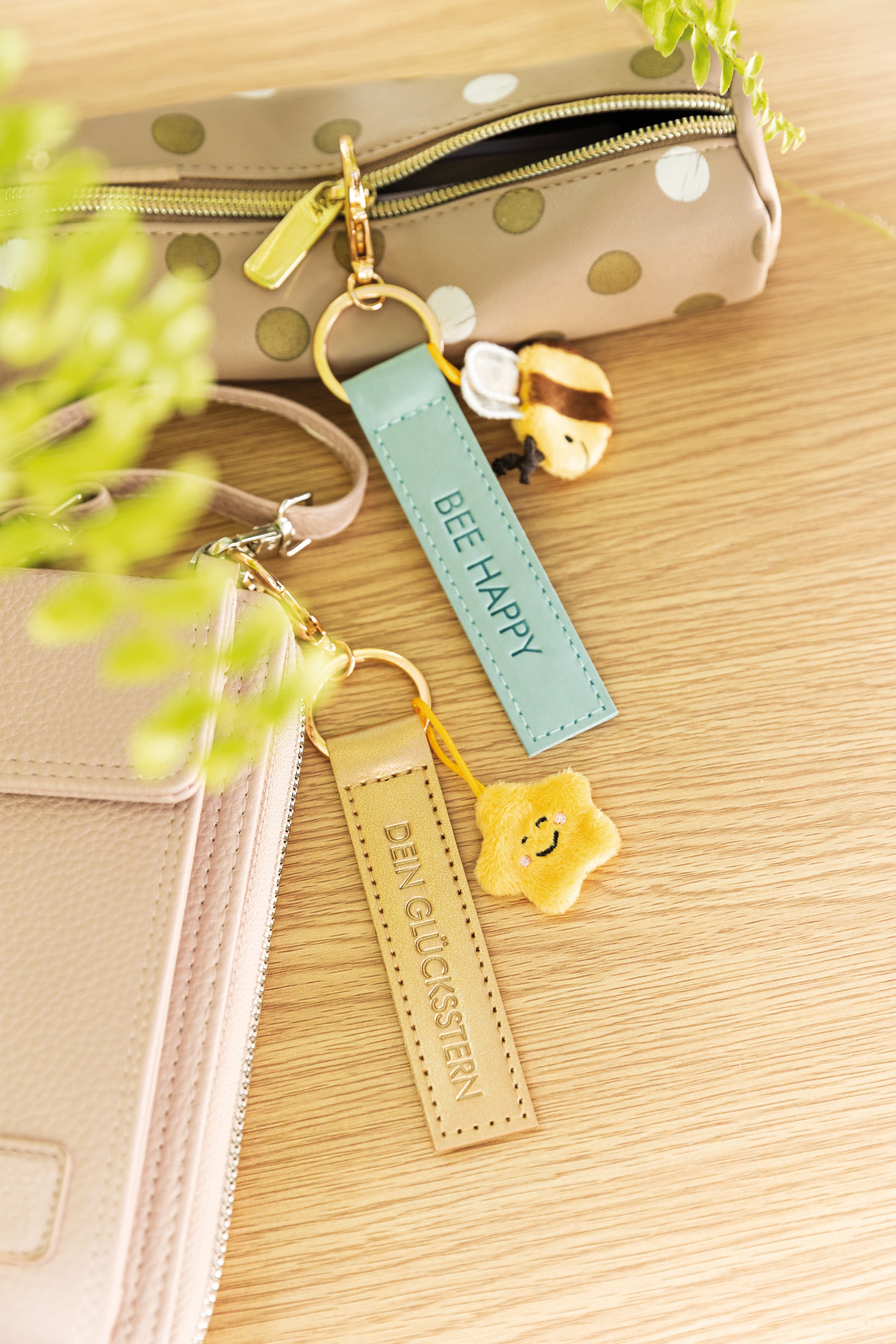 Als perfekter Begleiter für den Alltag zieht der türkisfarbene Schlüssel- und Taschenanhänger aus der Key Friends Kollektion von NICI alle Blicke auf sich! Der coole Anhänger mit Karabiner vereint Funktionalität mit modischem Design und ist ein echtes Fashion-Statement. Mit der geprägten Botschaft Bee happy auf einem hochwertigen Kunstlederband setzt der Anhänger einen echten Lifestyle-Trend. Eine kleine, lustig gestreifte Biene aus Plüsch rundet das Gesamtbild ab und zaubert einen Hauch von Verspieltheit. Ob am Schlüsselbund, Rucksack, Koffer oder als modisches Accessoire – der Key Friends Schlüssel- und Taschenanhänger verleiht jedem Look das gewisse Etwas. Ideal als Geschenk für sich selbst oder als liebevolles Mitbringsel für Freunde und Familie!