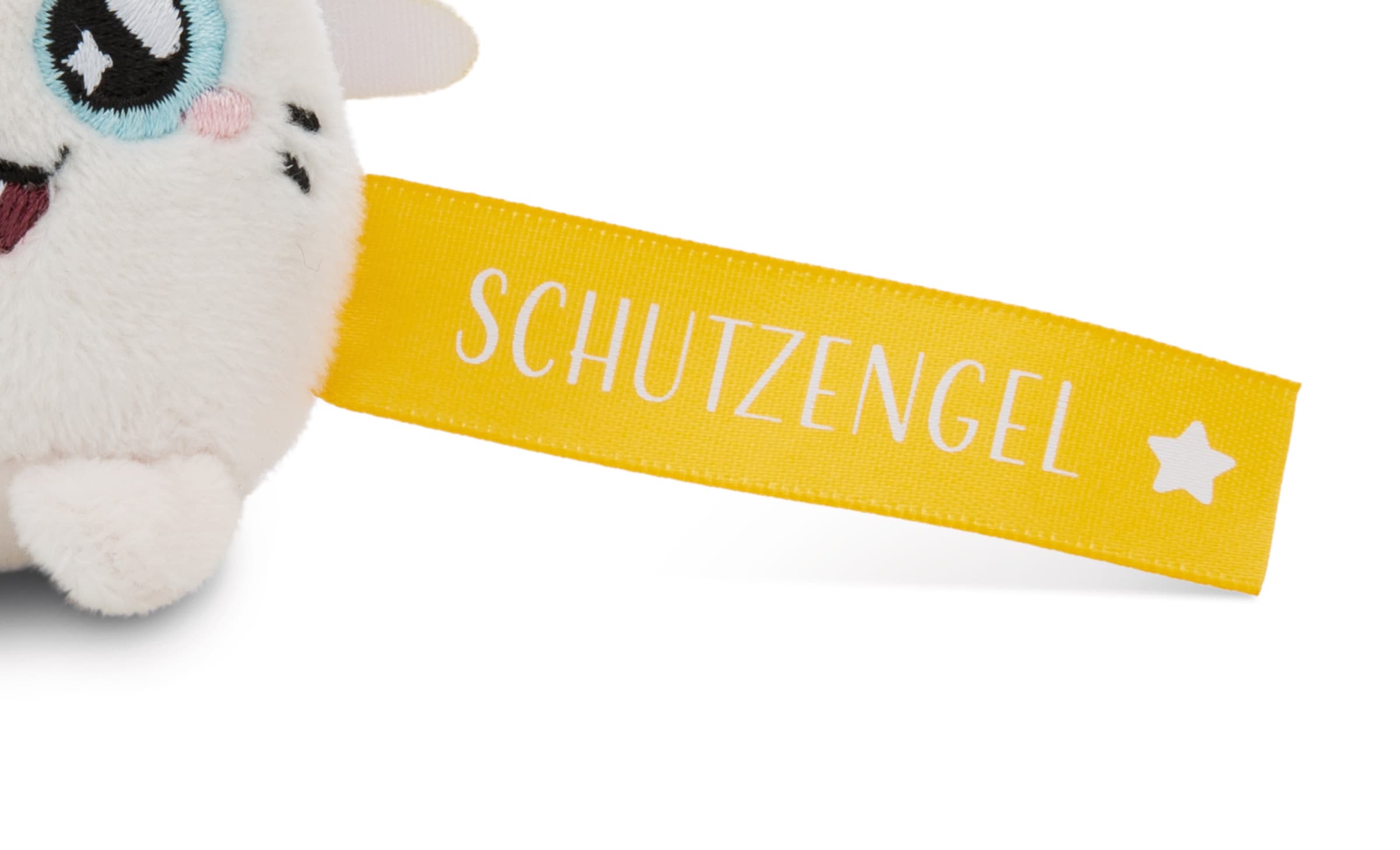 Das süße, weiße Häschen aus kuschelweichem NICI Plüsch verzaubert Jung und Alt mit seinen kleinen Schutzengel-Flügelchen und seinen großen Augen. An seinem Kopf ist ein stabiler Schlüsselring aus Metall befestigt, der dafür sorgt, dass Schlüssel zusammengehalten werden und der kleine NICI Plüschhase Rucksäcken, Taschen oder Schulranzen eine ganz besondere Note gibt. Ob zum Geburtstag, als Glücksbringer oder als süßes Mitbringsel - der NICI Schlüssel- und Taschenanhänger Hase mit seinem gelben Spruchband Schutzengel! ist immer eine liebenswerte Geschenkidee, die von Herzen kommt und dem Beschenkten Glück, Hoffnung und Schutz vermitteln soll.