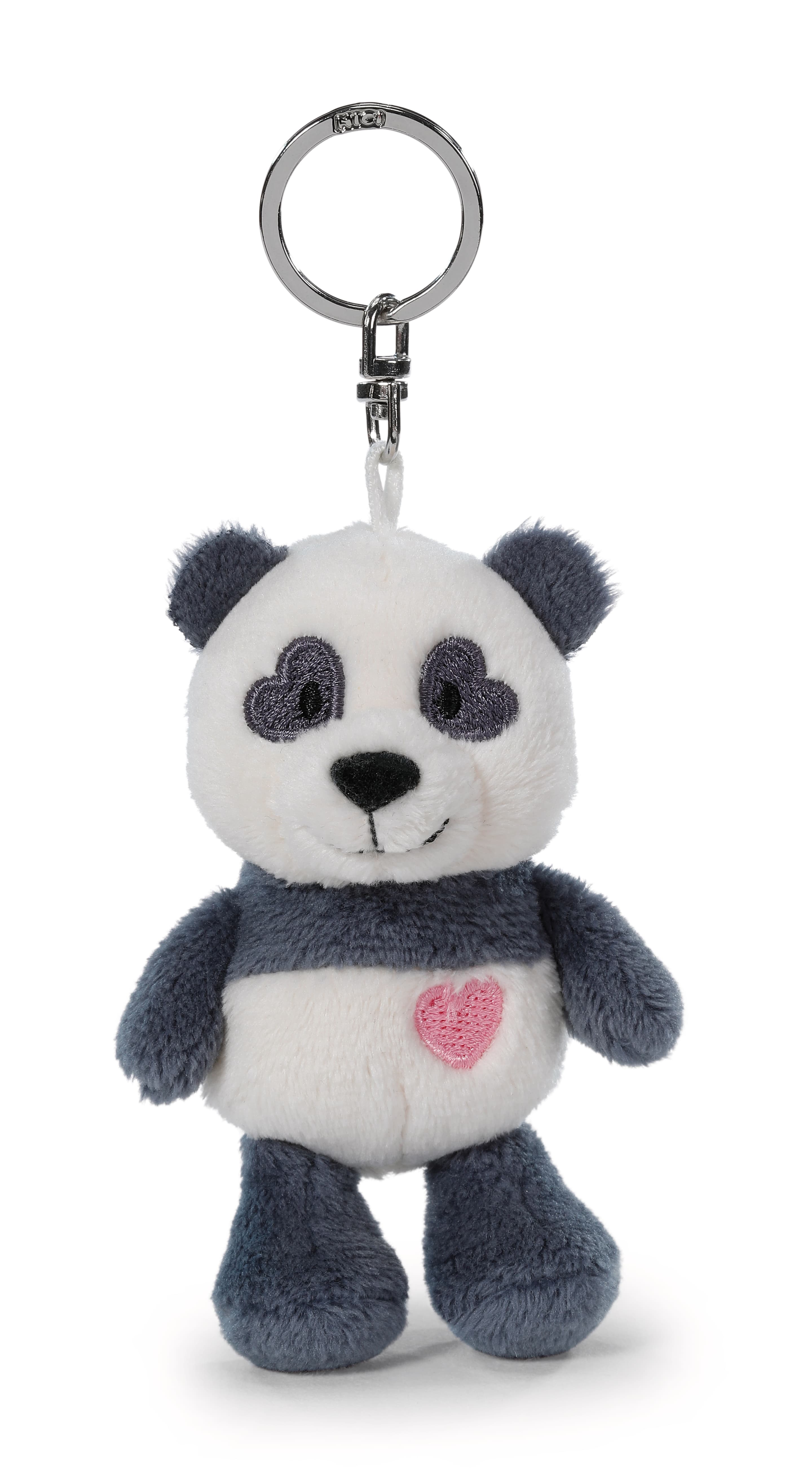 Der bezaubernde Love Panda aus der Love Classic Kollektion von NICI hält als plüschiger Schlüsselanhänger mit stabilem Schlüsselring aus Metall nicht nur Schlüssel sicher zusammen, sondern ist auch als stylischer Taschenanhänger ein echter Hingucker. Sein typisch schwarz-weißes Fell aus hochwertigem, flauschig weichem NICI Plüsch, sein runder, weicher Körper und seine herzförmig umrandeten Augen machen ihn zu einem unwiderstehlichen Alltagsbegleiter. Auf seinem Bäuchlein prangt ein liebevoll aufgesticktes rosa Plüschherz, das seine Botschaft von Zuneigung und Freundschaft perfekt unterstreicht. Ob zum Valentinstag, Geburtstag, Muttertag oder einfach als kleine Aufmerksamkeit für einen lieben Menschen - mit diesem niedlichen Panda verschenkt man nicht nur einen praktischen Schlüsselanhänger, sondern auch ein Stück Liebe. Der Schlüsselanhänger ist Teil der NICI GREEN Produktwelt. Für NICI GREEN Produkte verwenden wir fast ausschließlich Plüsch- und Füllstoffe, die aus recycelten Materialien bestehen. Hierfür werden vor allem alte PET-Flaschen zu RPET verarbeitet.
