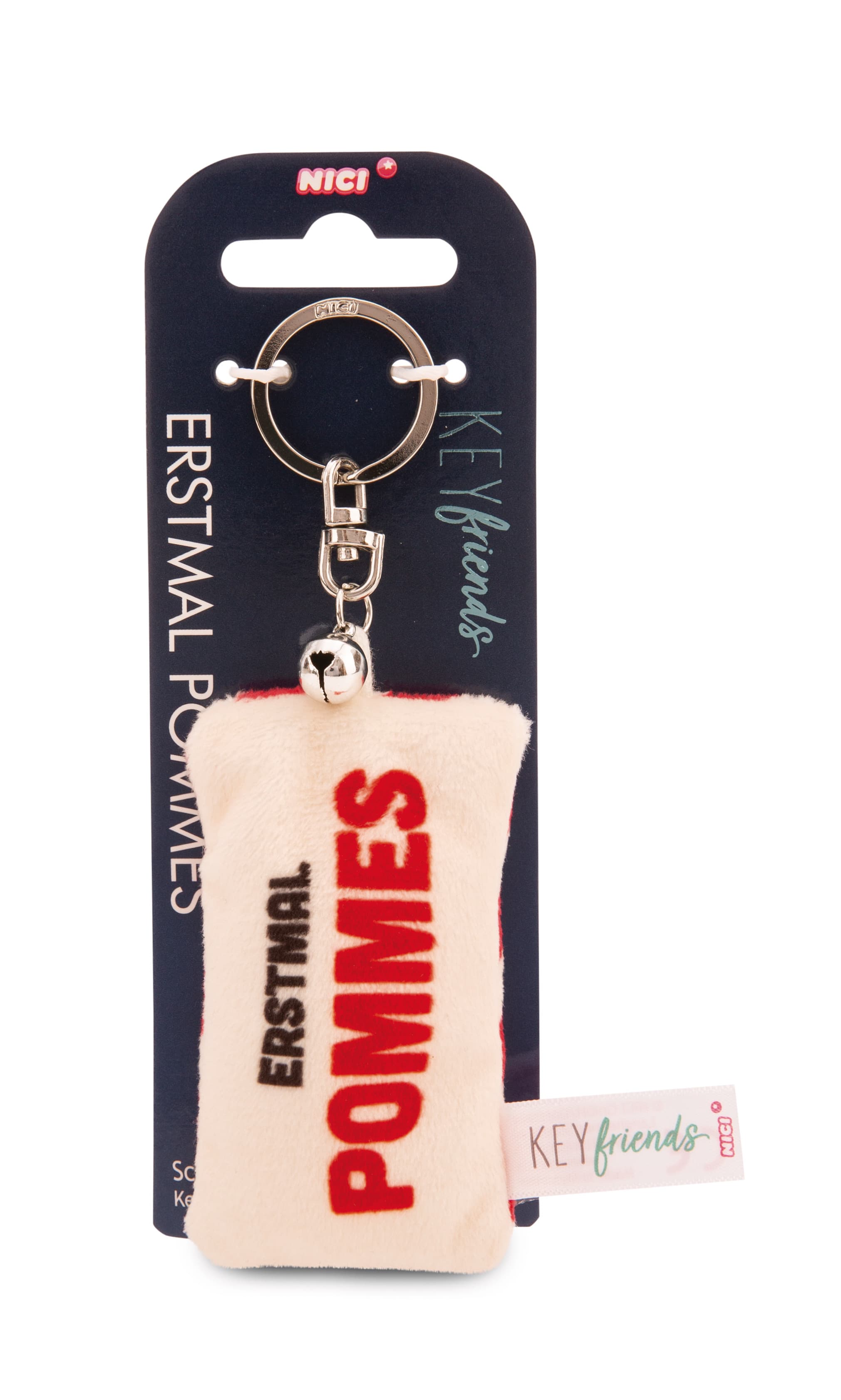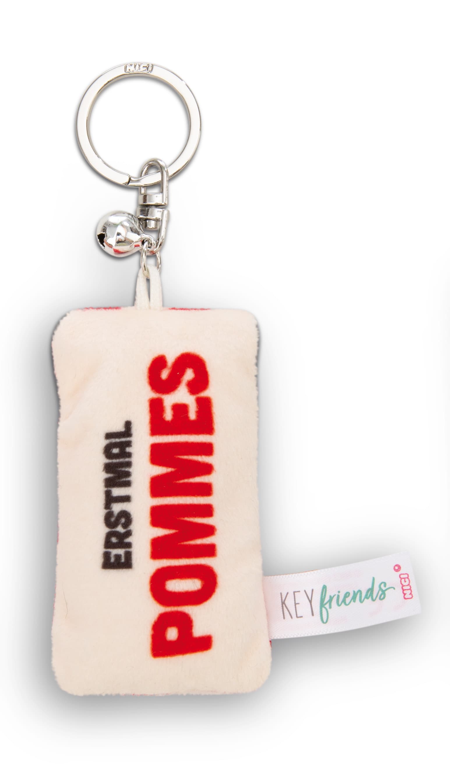Farbe und Spaß in den Alltag bringt der stylische Taschen- und Schlüsselanhänger in Mini-Plüschkissen-Format, der aus flauschig weichem NICI Plüschmaterial gefertigt ist und mit einem kleinen Glöckchen überrascht. Der Plüschanhänger aus der Key Friends Kollektion von NICI ist nicht nur ein praktisches Accessoire, sondern auch Handschmeichler und Eyecatcher. Die ausgefallene Form des coolen Lifestyle Schlüsselanhängers begeistert mit seinem fröhlichen Design und dem witzigen Statement „Erstmal Pommes. Mit seinem stabilen Schlüsselring lässt sich der Anhänger mühelos an Taschen, Rucksäcken oder Schlüsseln befestigen – perfekt für den täglichen Gebrauch! Ob als Geschenk für Freunde, Familie oder sich selbst - der charmante Plüschanhänger ist das ideale Geschenk für jedes Alter, Geschlecht und jeden Anlass.