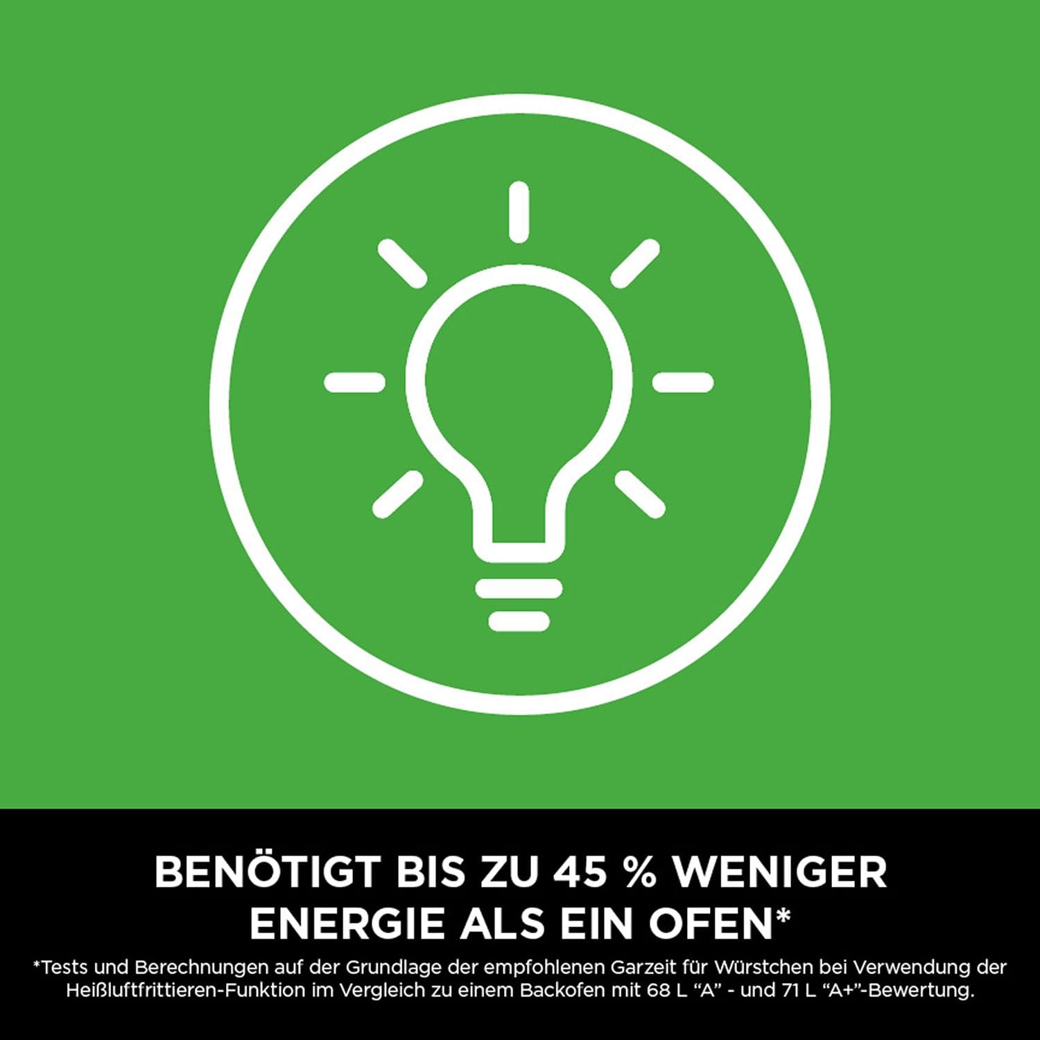 Mit der extragroßen 10,4-Liter-MegaZone haben Sie jetzt viel Platz für größere Speisen, die Sie normalerweise im Backofen zubereiten würden. Von einem Brathähnchen mit knusprigen Kartoffeln bis hin zu einer vorbereiteten Lasagne in Familiengröße. Das Gerät ist groß genug für eine Brat- oder Auflaufform und ermöglicht die Zubereitung von Lachs und Süßkartoffeln, geröstetem Gemüse, eine große Portion Brownies und vielem mehr.