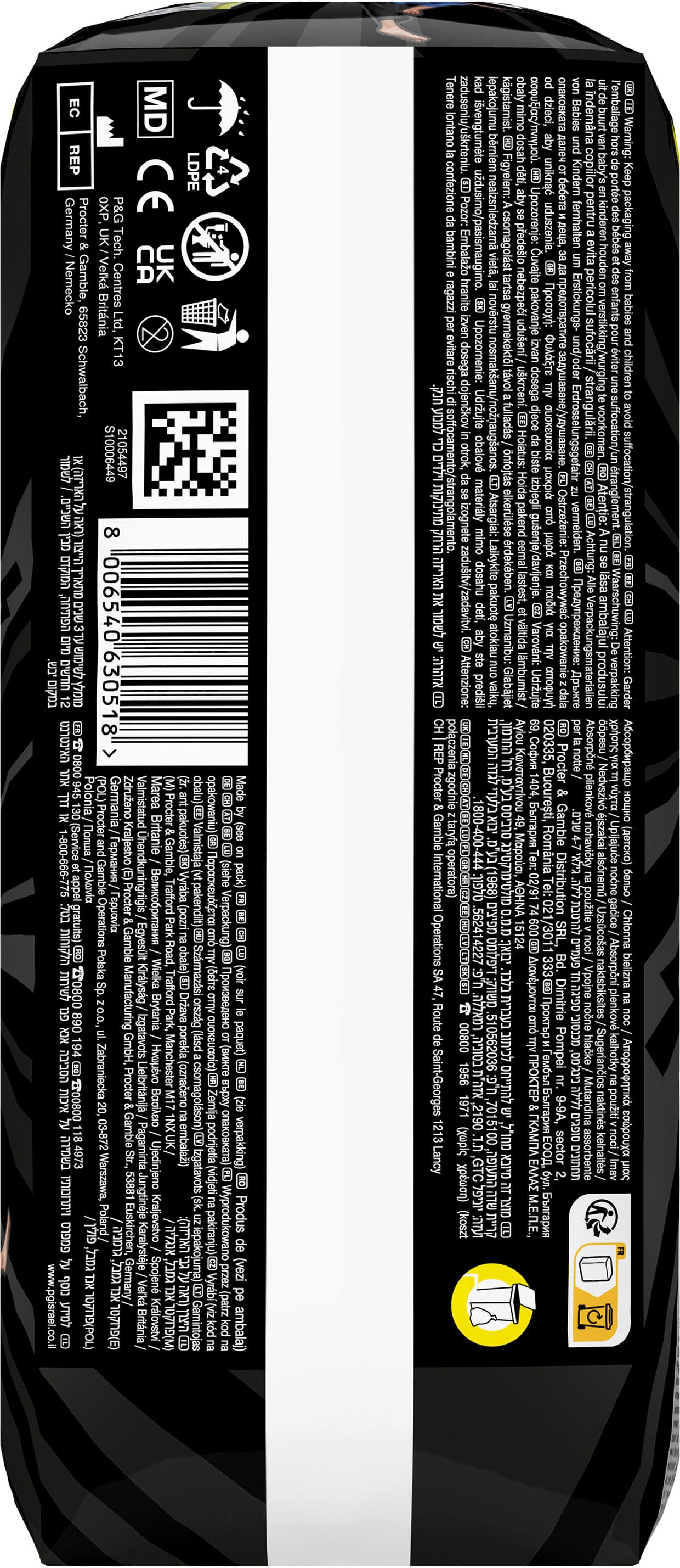 | Inhaltsstoffe | Super Absorber, Polypropylen, Zellulose, Polyethylen, Elastische Stoffe, Klebstoff, Polyester, Pigmente |