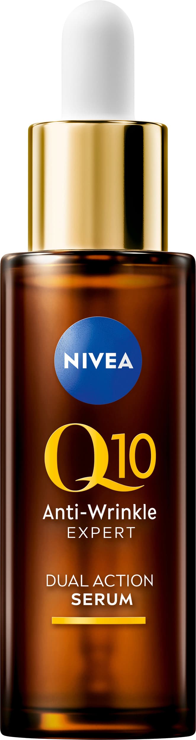Das NIVEA Q10 Anti-Falten EXPERTE Dual Action Serum wirkt durch die innovative Anti-Glykationstechnologie und seine wirkungsvollen Inhaltsstoffe gleich zweifach: Bestehende, selbst tiefste Falten werden gemildert, mit sichtbaren Ergebnissen in 2 Wochen. Außerdem kann dank des innovativen, bahnbrechenden Inhaltsstoffs GLYCOSTOP® neuen, zuckerbedingten Falten von innen heraus vorgebeugt werden. GLYCOSTOP® blockiert Glykation – die Verzuckerung der Haut – erfolgreich um 68 %.* Die Hautverträglichkeit ist dermatologisch bestätigt. Außerdem bestätigen 97 % der Frauen, dass die Haut sofort glatter aussieht.** Optimieren Sie jetzt Ihre Anti-Falten-Routine: Das Q10 Anti-Falten EXPERTE Dual Action Serum ist in Kombination mit dem Q10 Anti-Falten EXPERTE Dual Action Serum 4x wirksamer als die Verwendung der Tagespflege allein.*in vitro**Selbsteinschätzung, 113 Frauen, 2023.