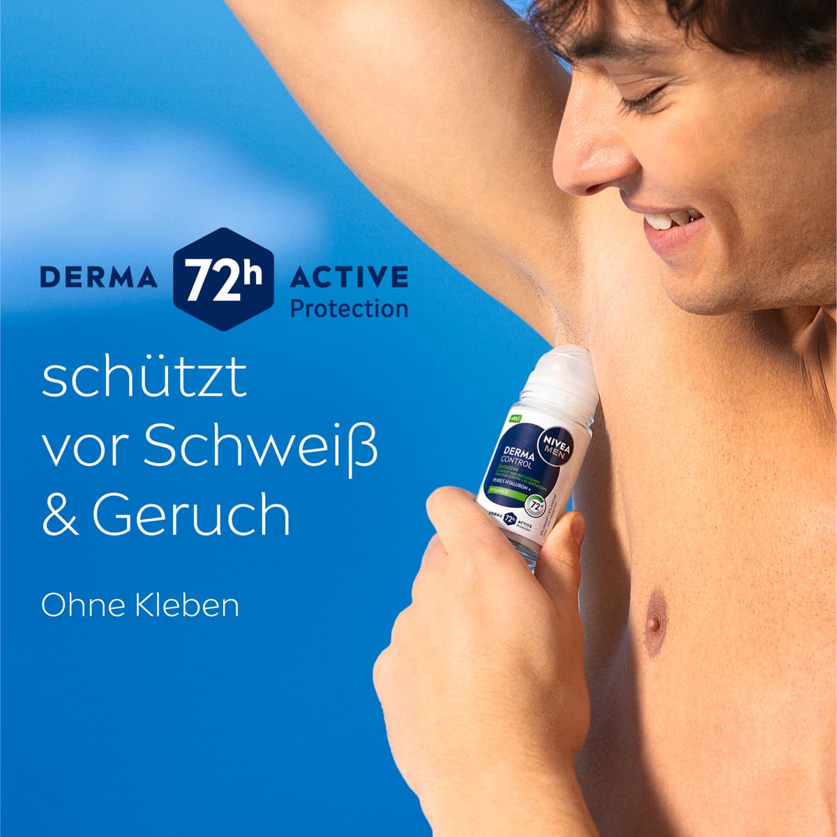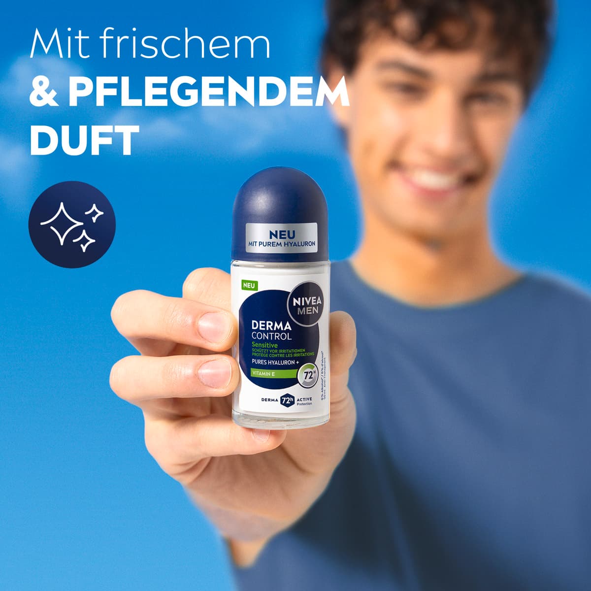 Der NIVEA MEN Derma Control Sensitive Roll-On bietet zuverlässigen Anti-Transpirant-Schutz und pflegt gleichzeitig empfindliche Haut. Die Formel mit purem Hyaluron und Vitamin E beugt Hautreizungen vor und sorgt für sanfte, wirksame Achselpflege. Die Formel ist dermatologisch auf Hautverträglichkeit getestet und enthält keinen Ethylalkohol, was sie ideal für empfindliche Haut macht. Unsere Anti-Transpirantien bieten Derma 72h Aktiv-Schutz: Sie arbeiten mit der Haut für zuverlässige und starke Wirksamkeit gegen Schweiß und Geruch und sind sanft zur Haut. NIVEA ist in mehr als 160 Ländern präsent und gehört mit mehr als 140 Jahren Erfahrung zu den größten und vertrauenswürdigsten Hautpflegemarken der Welt. Als Marktführer in der globalen Hautpflegebranche arbeiten unsere Forscher intensiv daran, hochwertige, dermatologisch geprüfte Produkte für verschiedene Hauttypen und -bedürfnisse anzubieten.