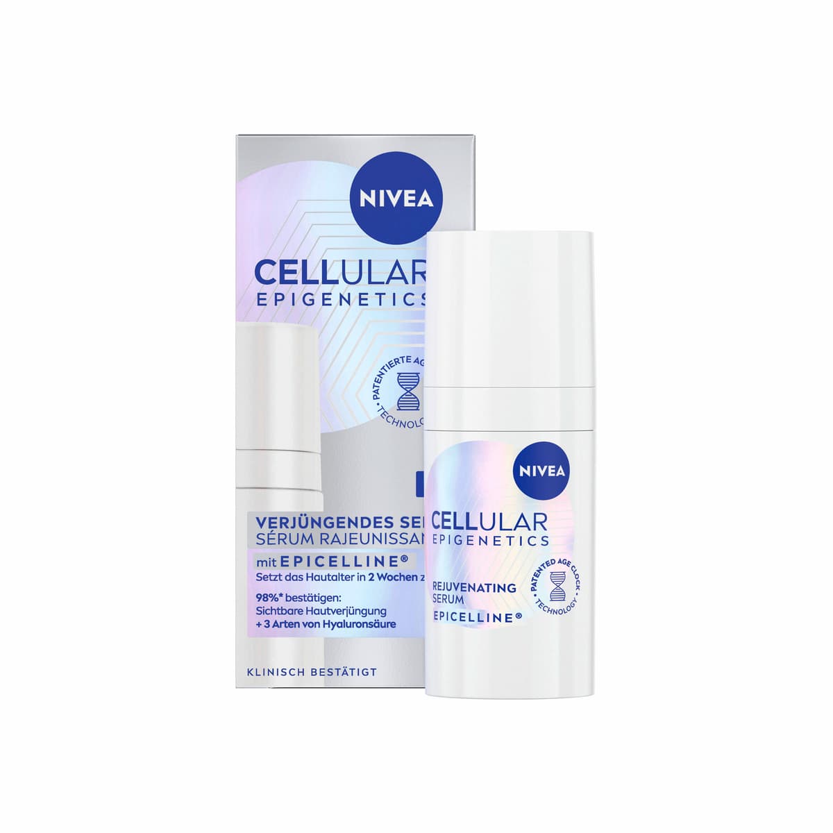 Das Cellular Epigenetics Verjüngendes Serum ist ein effektives Serum, das für ein strahlenderes, aufgepolsterteres und jugendlicheres Aussehen sorgt. Nach 15 Jahren intensiver Forschung an 50.000 getesteten Wirkstoffen hat NIVEA Epicelline® entdeckt - einen bahnbrechenden Inhaltsstoff im Bereich der epigenetischen Wissenschaft, der die Jugendfunktionen der Hautzellen reaktiviert und das Zellalter umkehrt. Wissenschaftlich nachgewiesen durch die patentierte Age Clock Technologie, reduziert er das Hautalter innerhalb von 2 Wochen. Zusammen mit drei Arten von Hyaluronsäure ist das Serum die neueste Innovation von NIVEA im Anti-Ageing Bereich. Mit seiner effektiven Formel setzt es 10 Zeichen der Hautalterung** zurück und ist für alle Hauttypen geeignet.